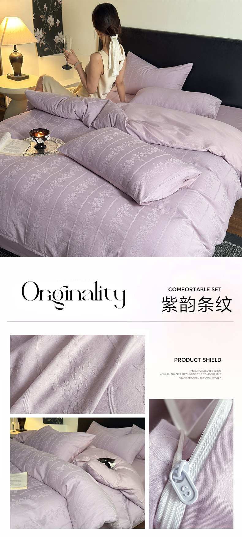 (总)佰亿莱 2026新款新疆长绒棉60支水洗提花四件套,茶韵,蝶影粉,粉黛,海之蓝,花遇棕,柳丝白,米白锦纹,奶白流云,浅杏清欢,石纹灰,素咖,紫韵条纹,棕纹