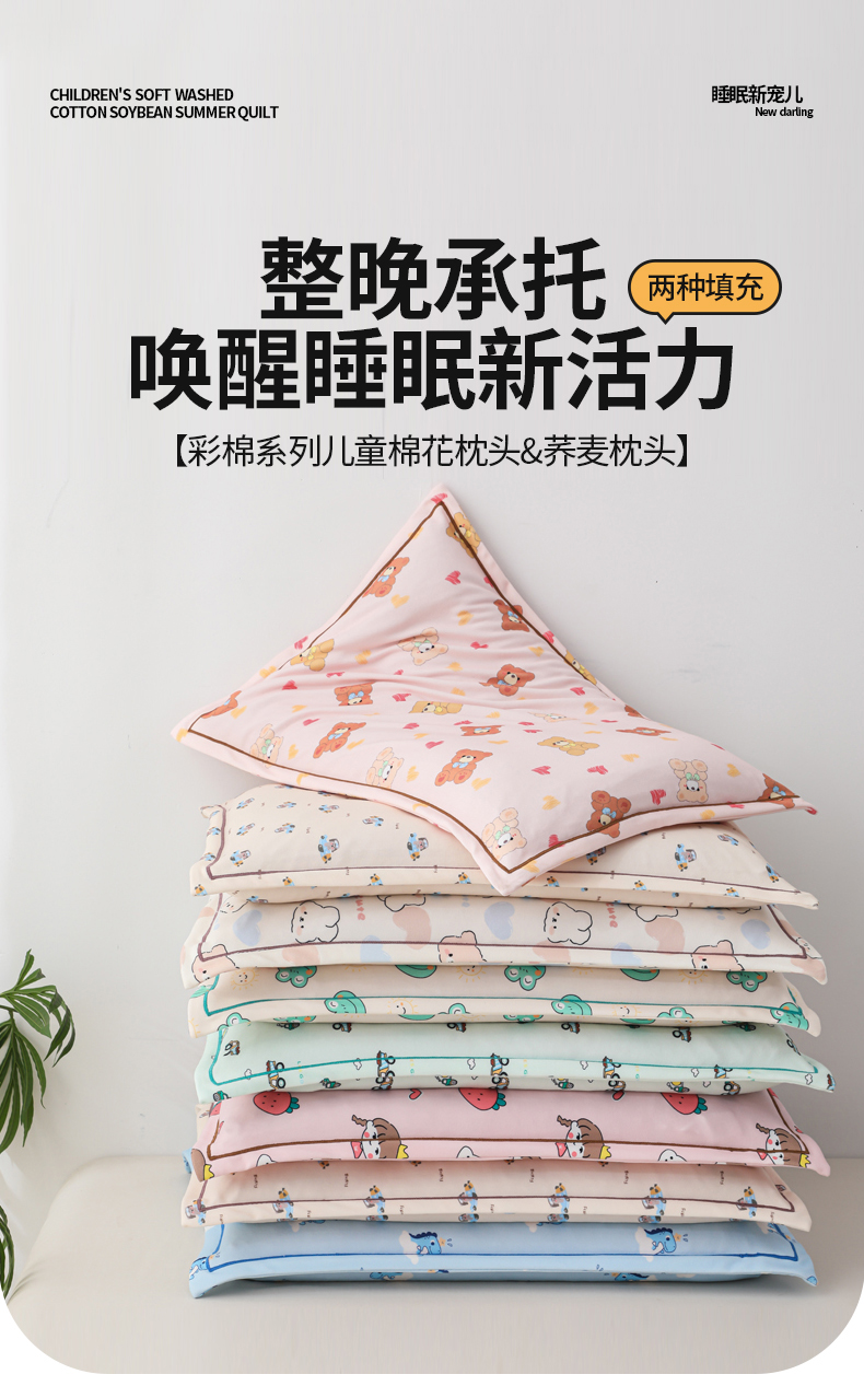 (总)仁宇枕业 2026新款回形彩棉婴幼儿童棉花枕头荞麦枕头