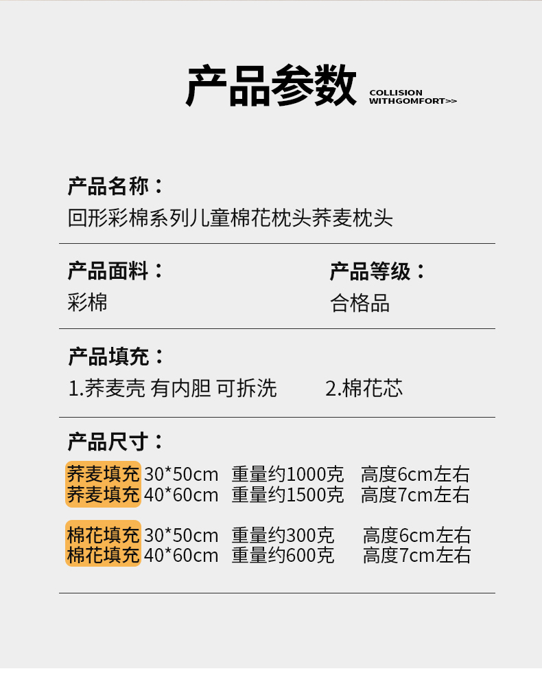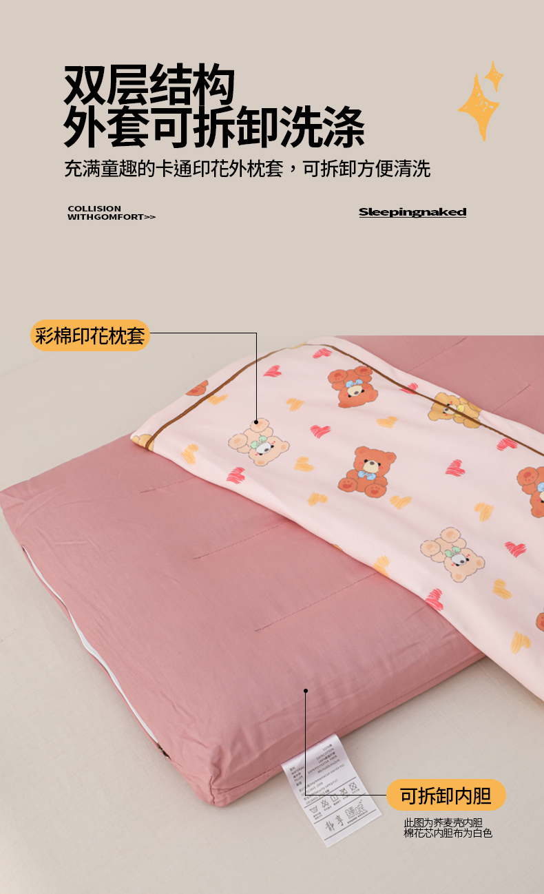 商品名称:(总)仁宇枕业 2026新款回形彩棉婴幼儿童棉花枕头荞麦枕头