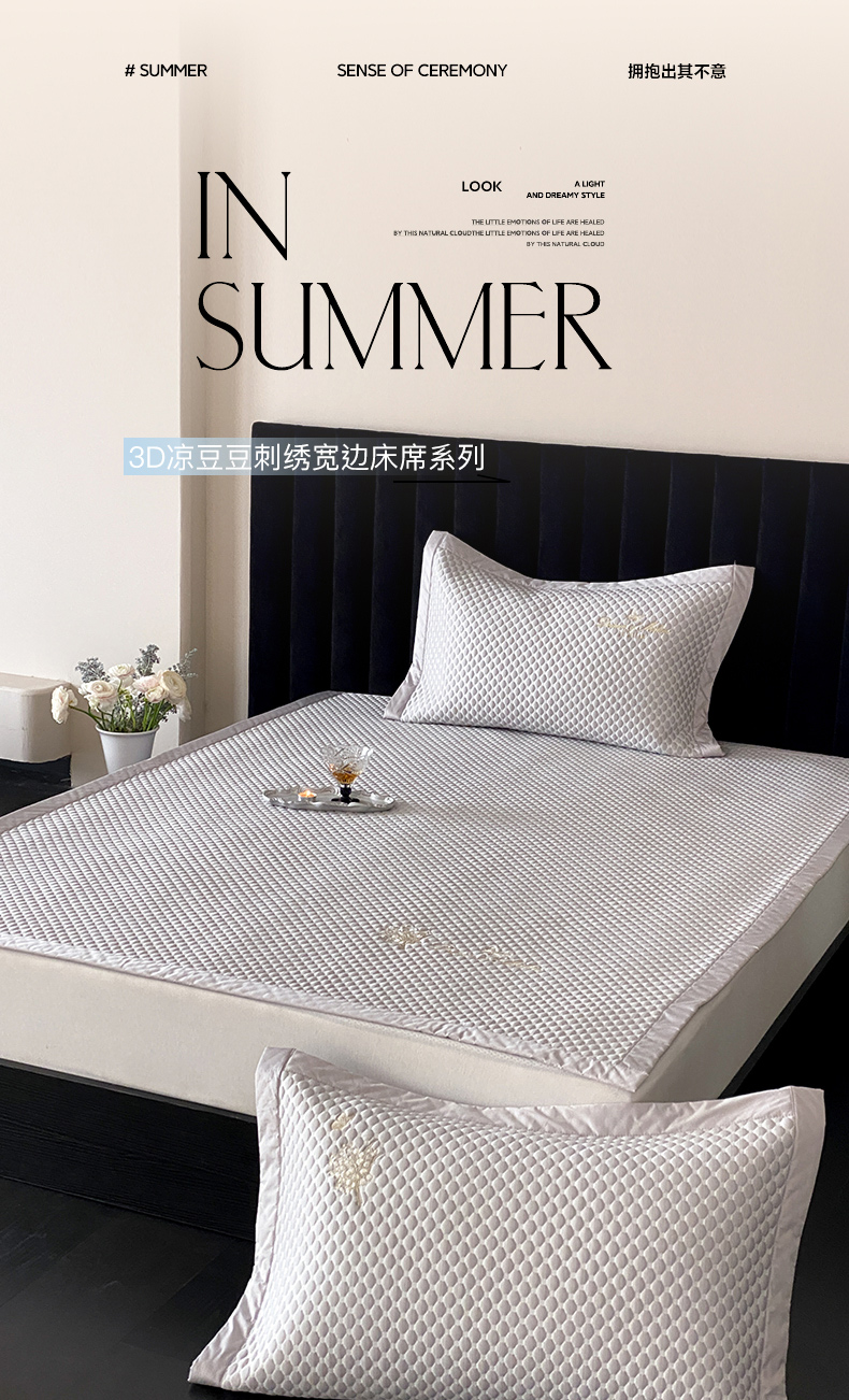 商品名称:(总)云栖家居 2026新款春夏凉豆豆PE冰感凉席席子全棉宽边软平席-铃兰