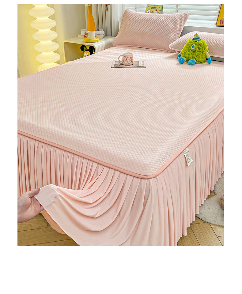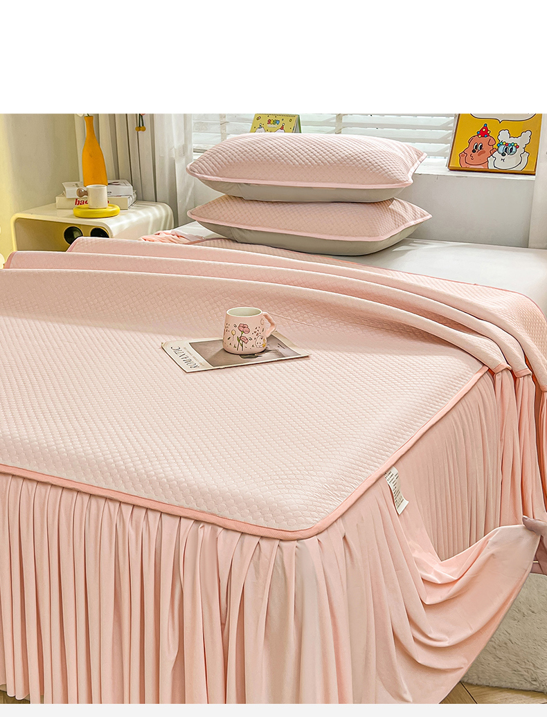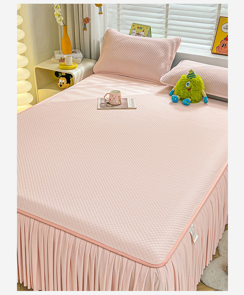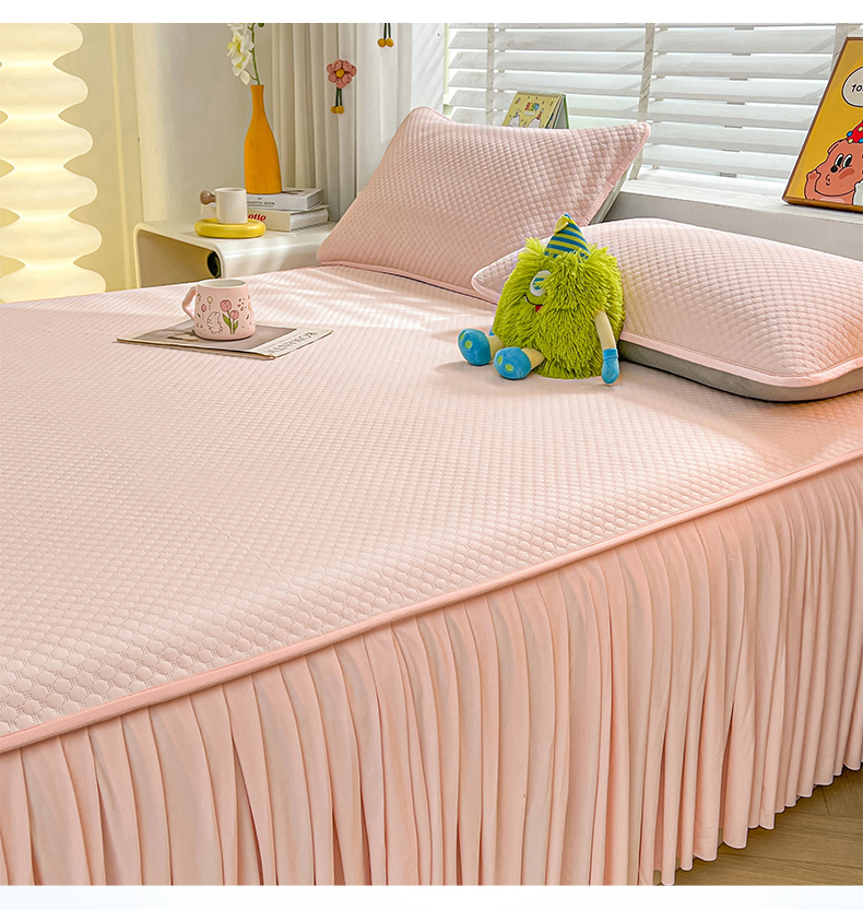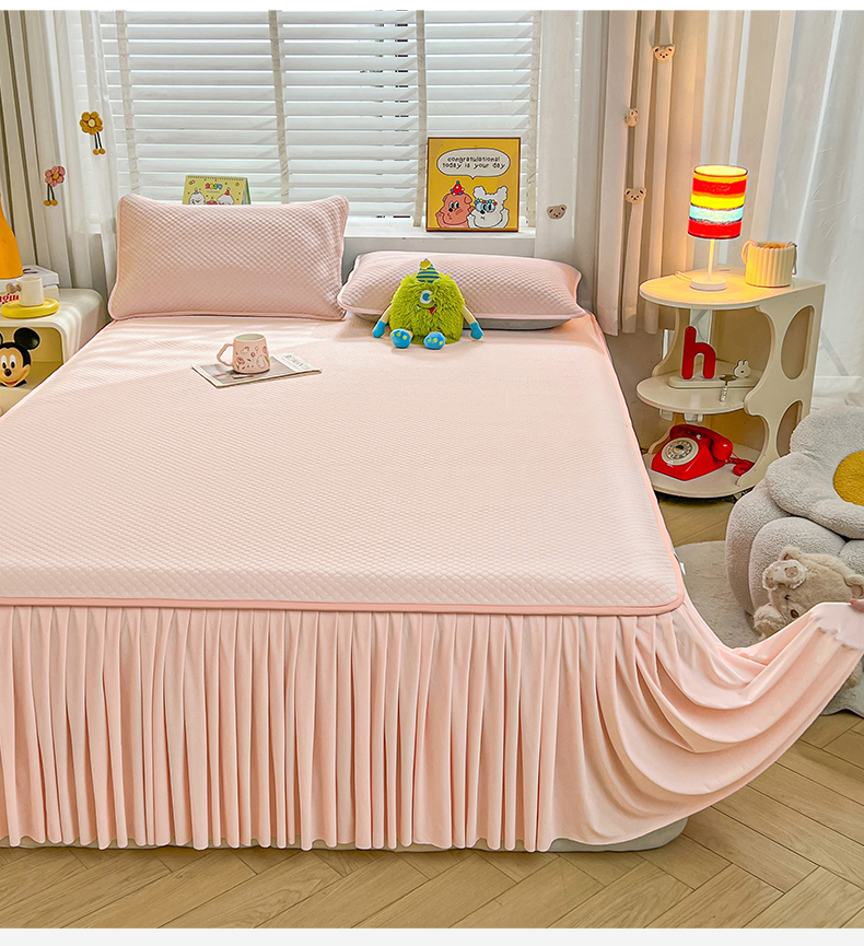 雯豆家纺 2026新款A类凉感丝花边床裙款凉席席子凉席 凉感丝床裙-胭脂粉