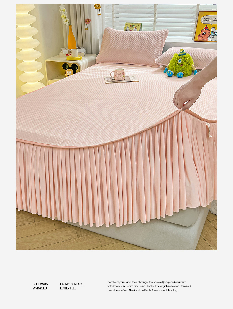 当前位置: 91家纺网 > 商品网购 > 床上用品 > 凉席 > 雯豆家纺 2026新款A类凉感丝花边床裙款凉席席子凉席 凉感丝床裙-胭脂粉