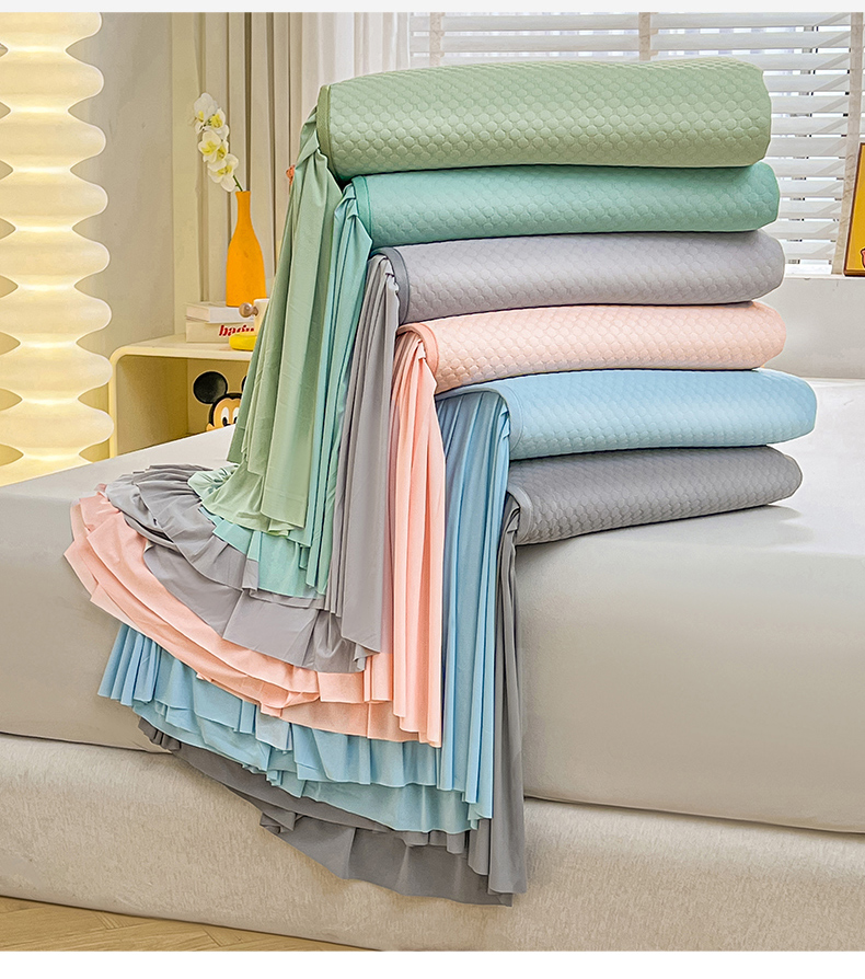 • 91家纺网 家纺一手货源 找家纺 (总)雯豆家纺 2026新款A类凉感丝花边床裙款凉席席子凉席,凉感丝床裙-碧空蓝,凉感丝床裙-春辰绿,凉感丝床裙-淡雅灰,凉感丝床裙-轻奢灰,凉感丝床裙-森林绿,凉感丝床裙-胭脂粉