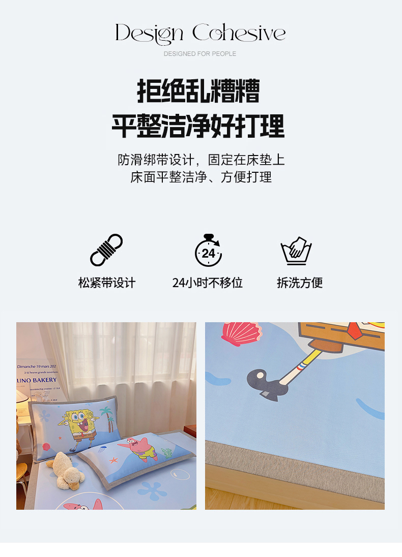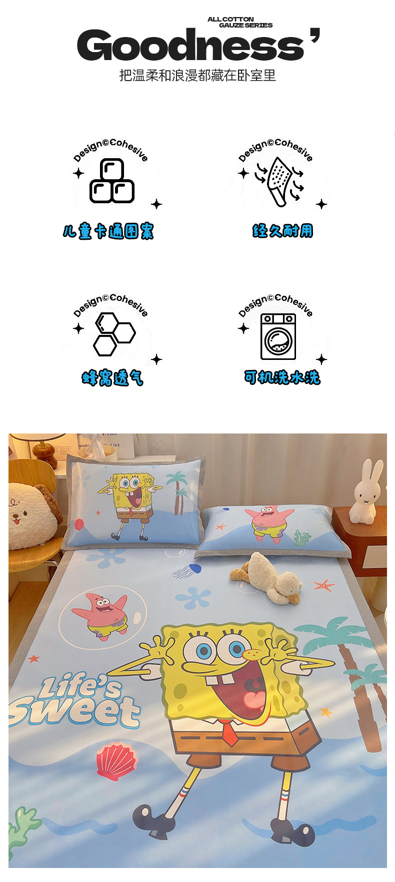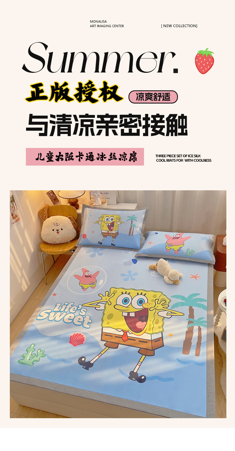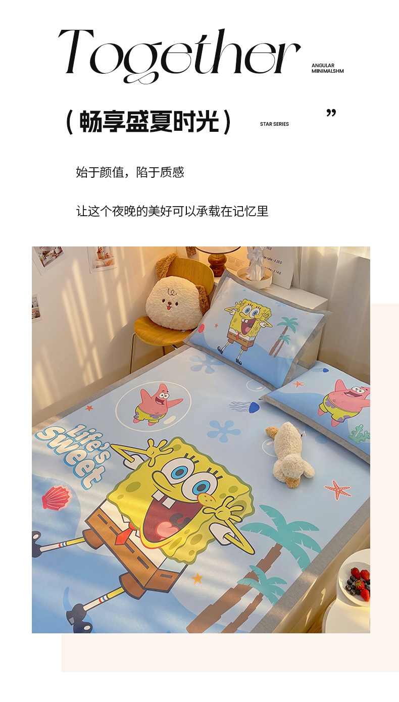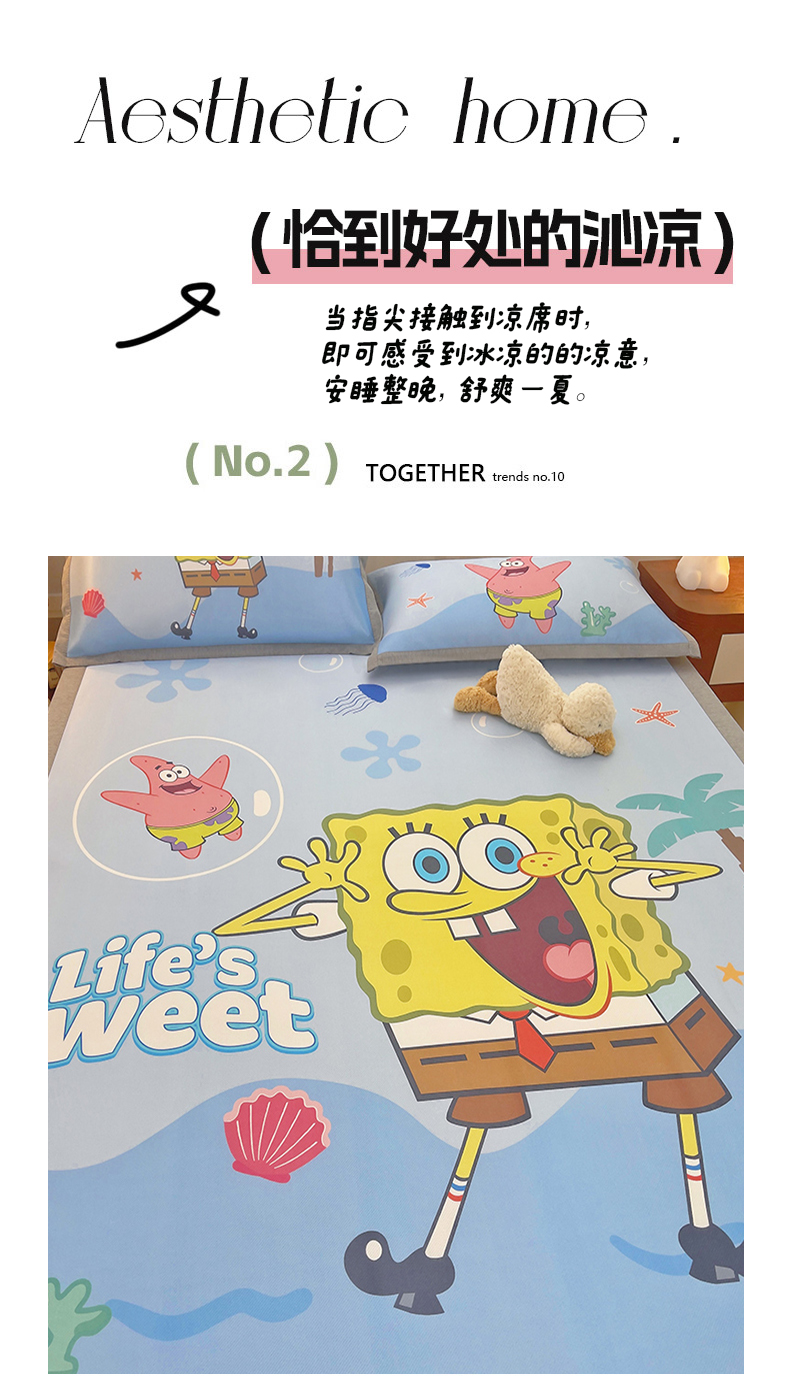云恋家纺 2026春夏新款大阪卡通冰丝凉席席子空调软席套件 大阪-海底海绵宝宝