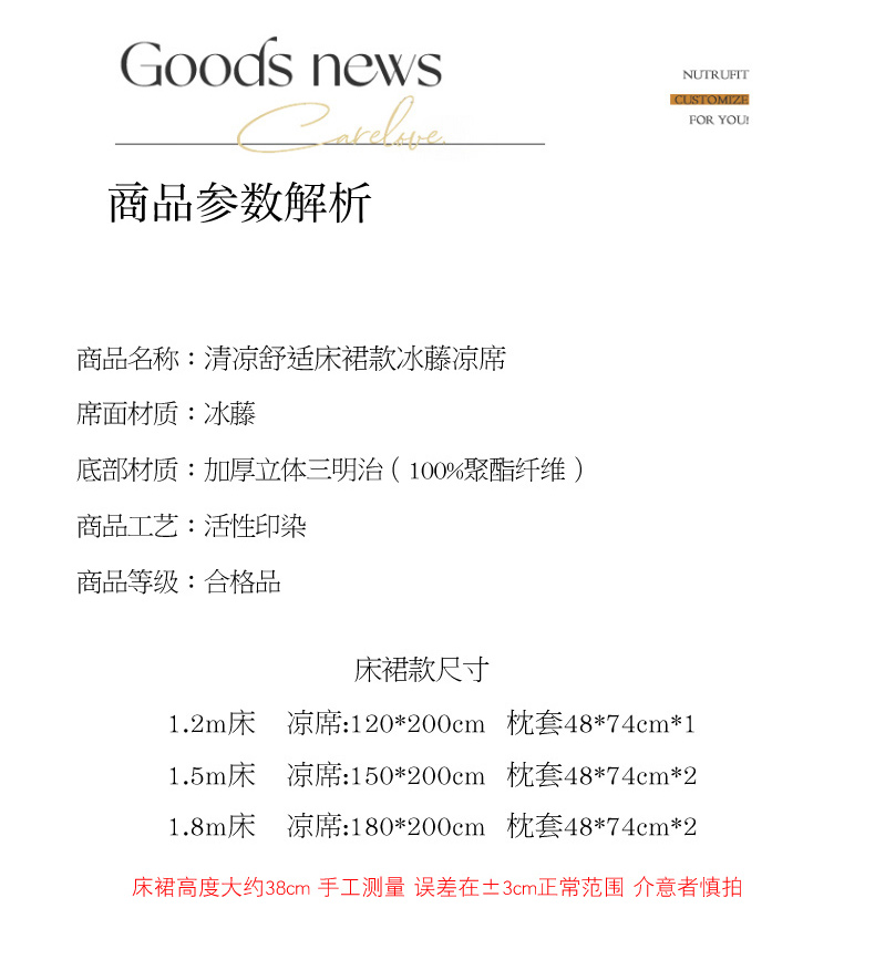 商品名称:印季家纺 2026新款纯色加密冰藤床裙款席子凉席 水绿
