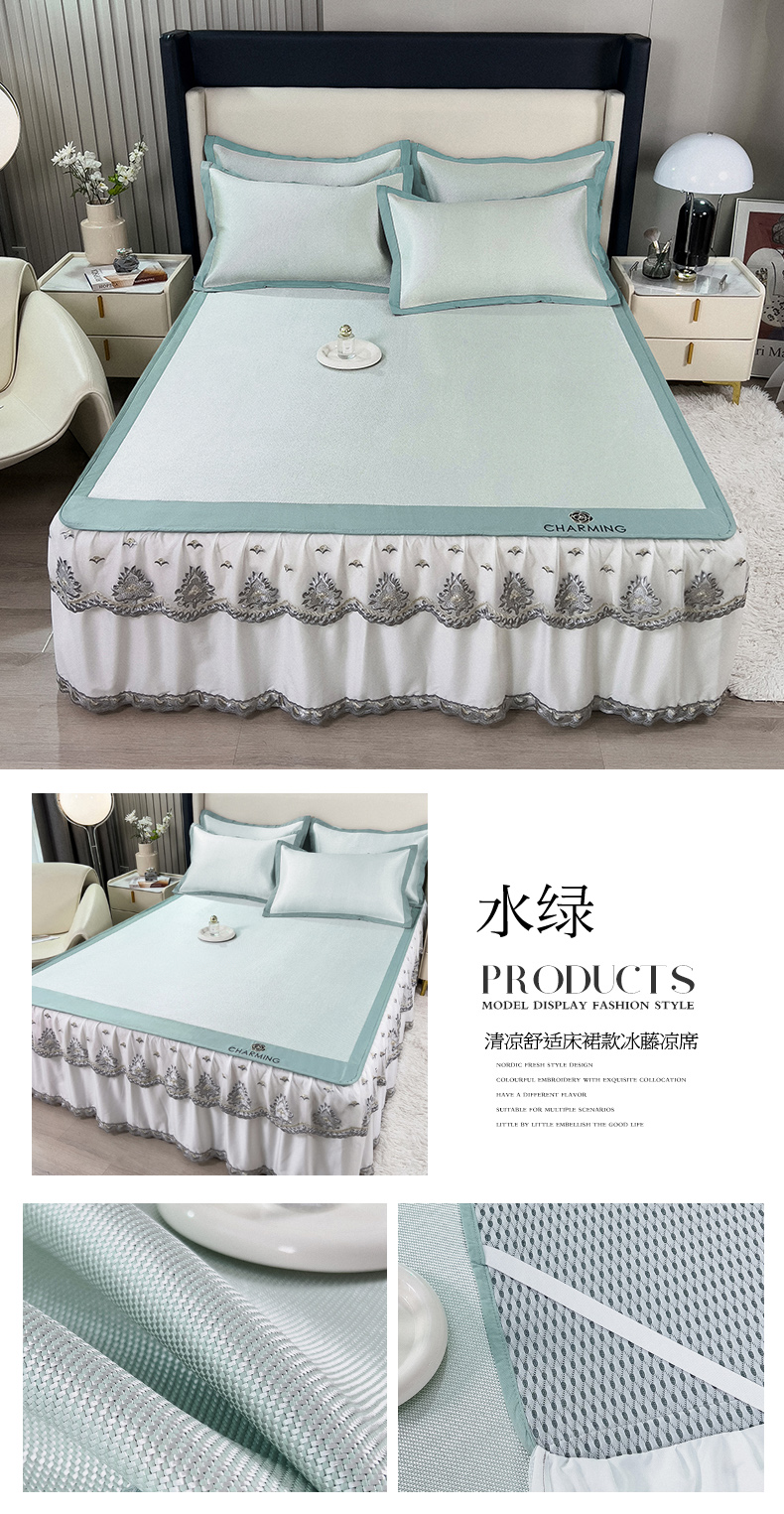 印季家纺 2026新款纯色加密冰藤床裙款席子凉席 水绿