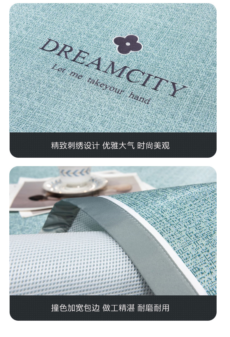 商品名称:印季家纺 2026新款加厚肌理纹绣花碳光席席子凉席 水绿