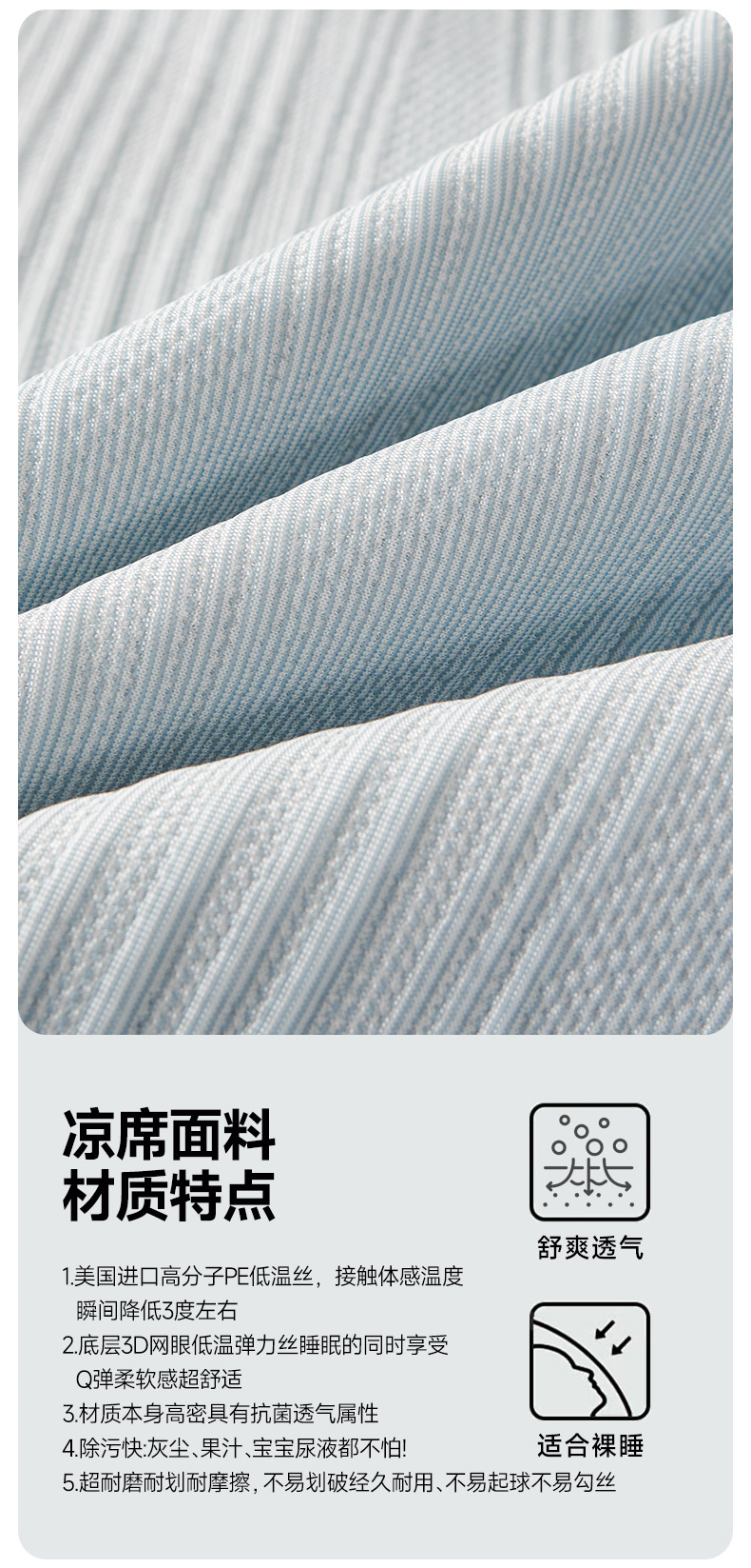 (总)桂雅居 2026新款进口高分子素夏轻居床裙床笠款凉席三件套(会员减15 控价:不低于298(券后)),素雅灰,薄荷蓝,米咖色,清新绿,温柔粉