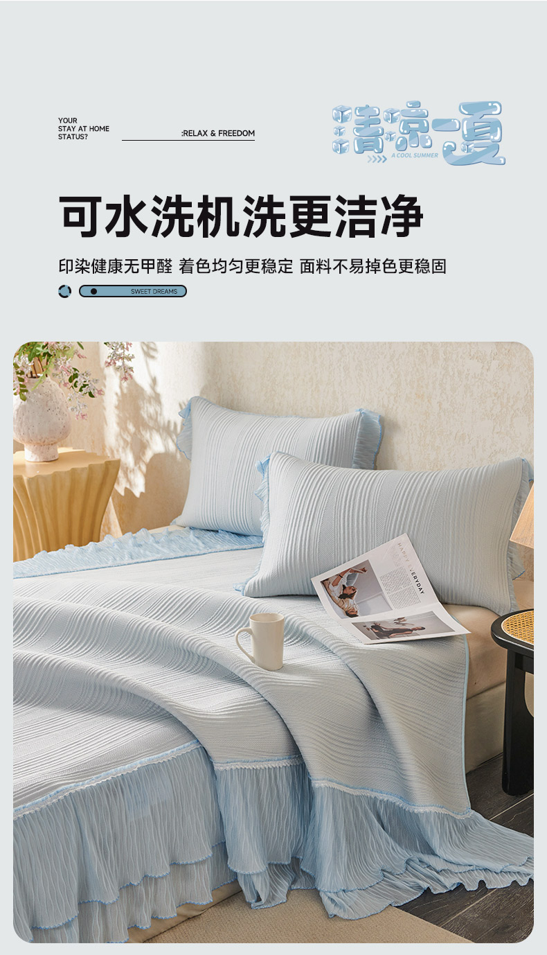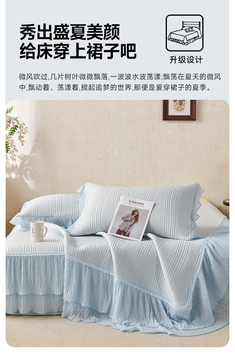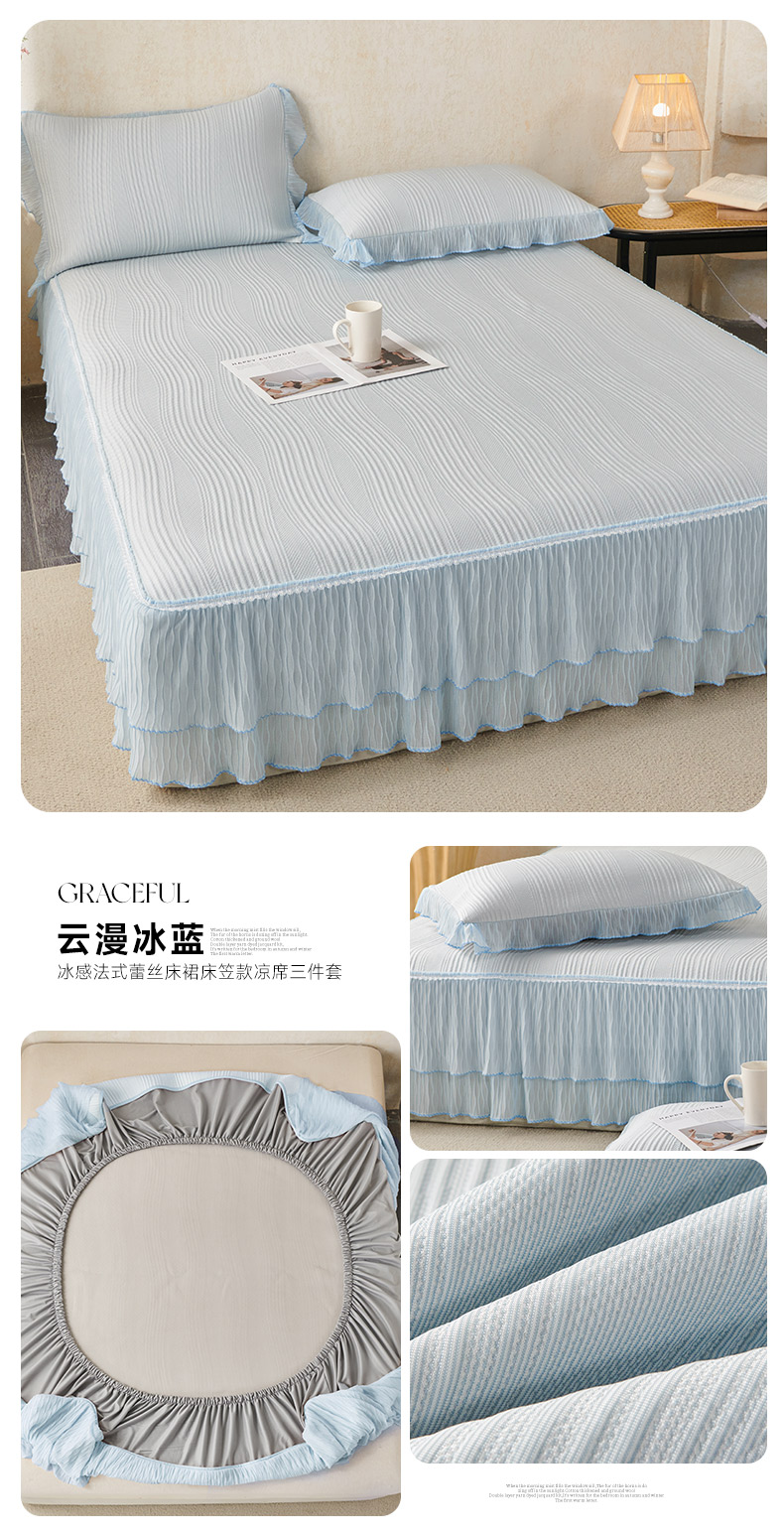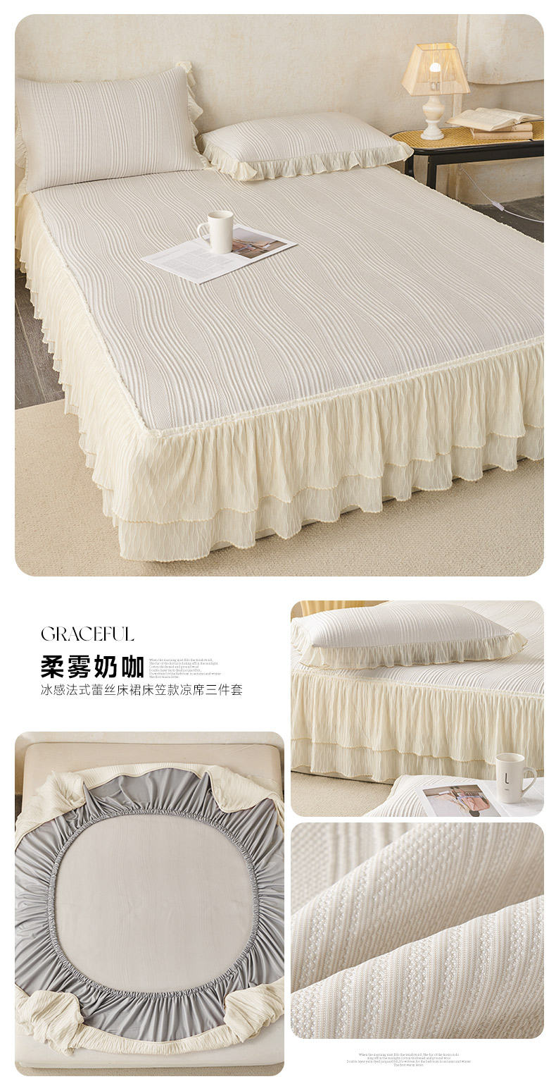 (总)桂雅居 2026新款高分子冰感蕾丝床裙床笠款凉席三件套,浅夏桃风,清氧浅绿,柔雾奶咖,素影灰纱,云漫冰蓝