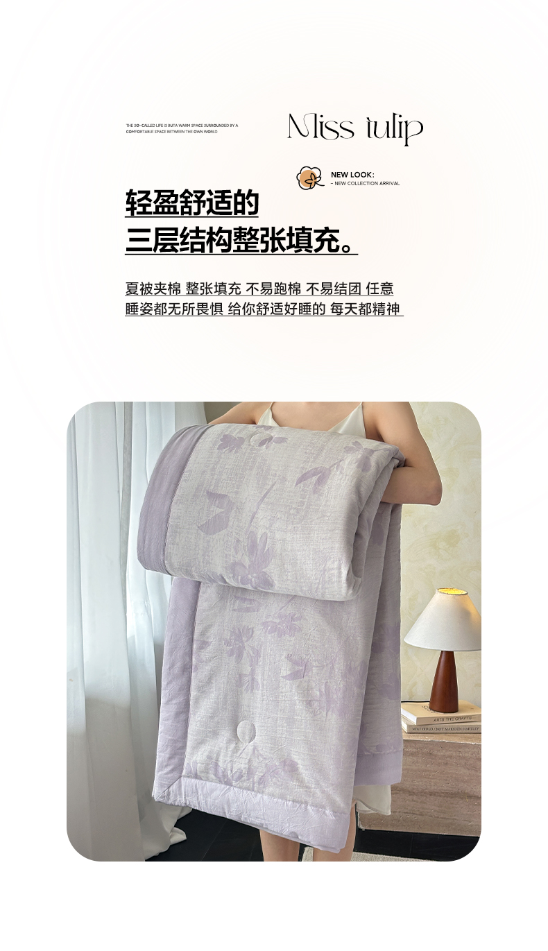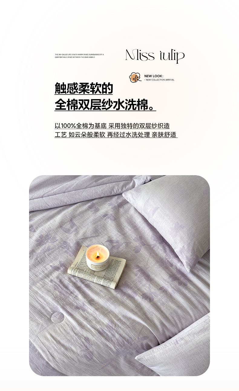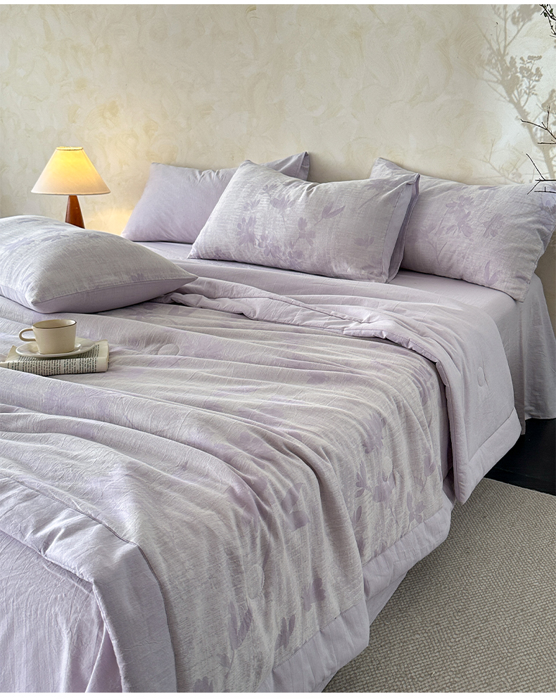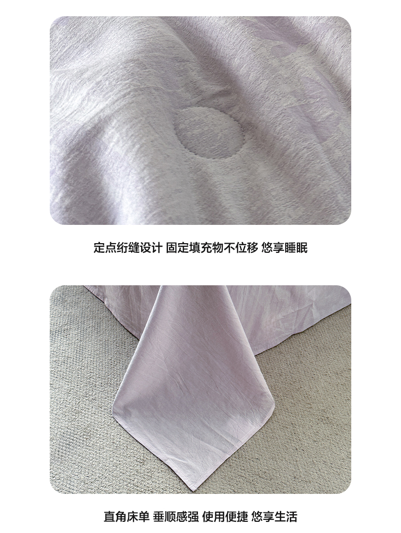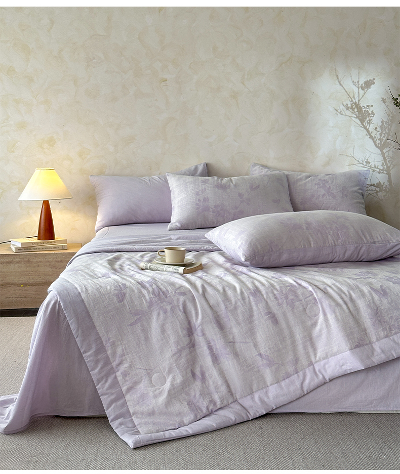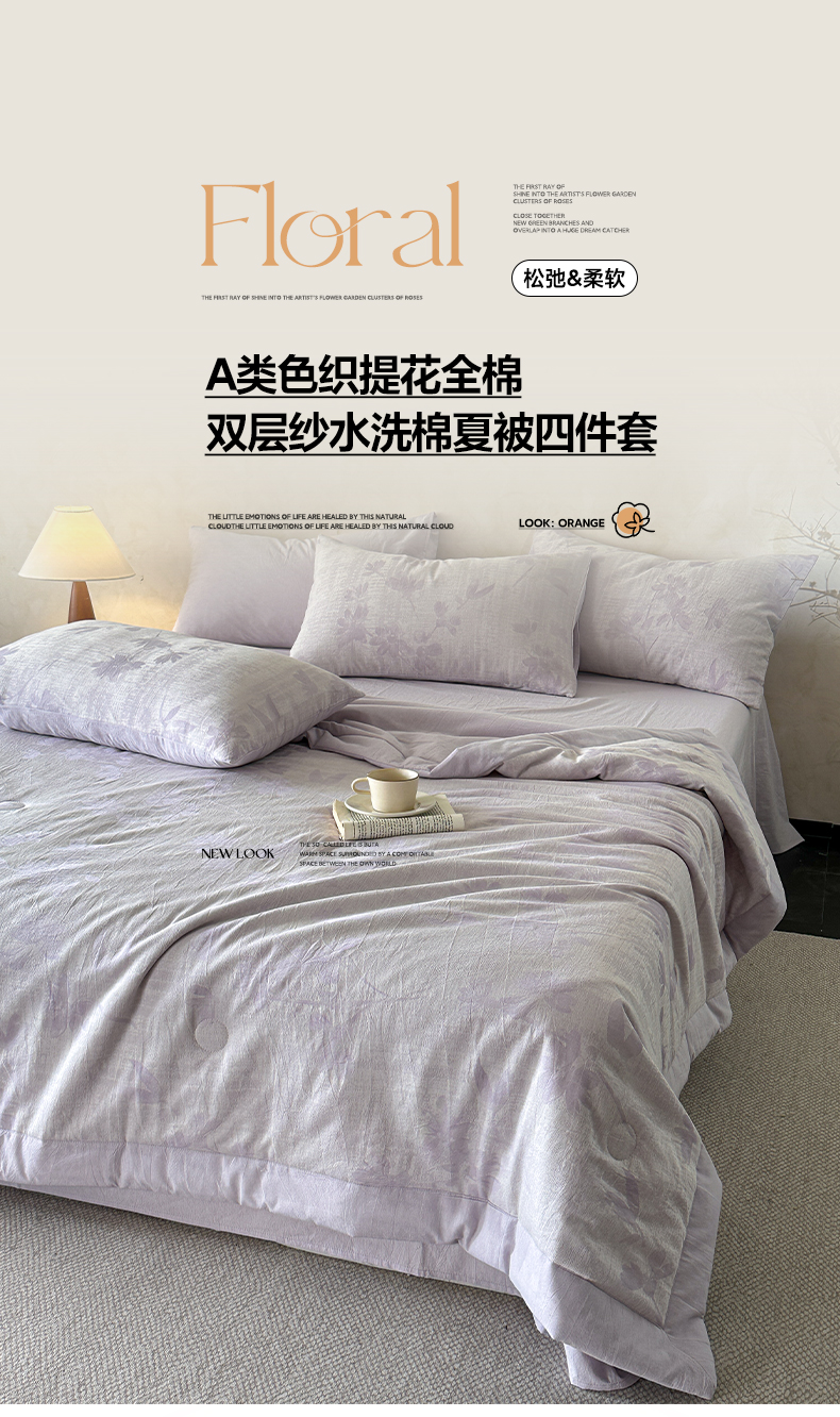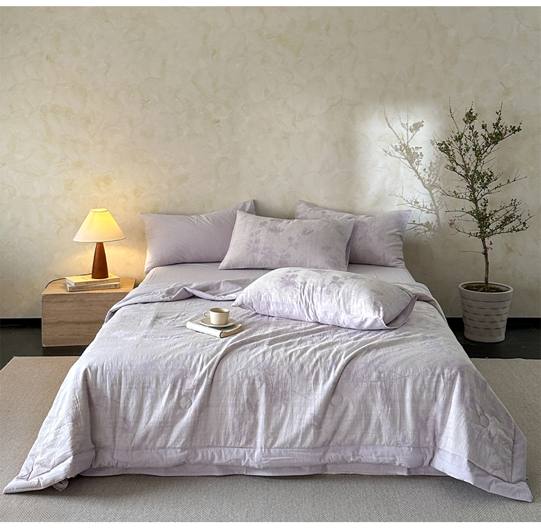 当前位置: 91家纺网 > 商品网购 > 床品套件 > 四件套 > 夏被四件套 > 如一 2026新款A类色织提花全棉双层纱水洗棉夏被夏凉被空调被四件套 兰序紫