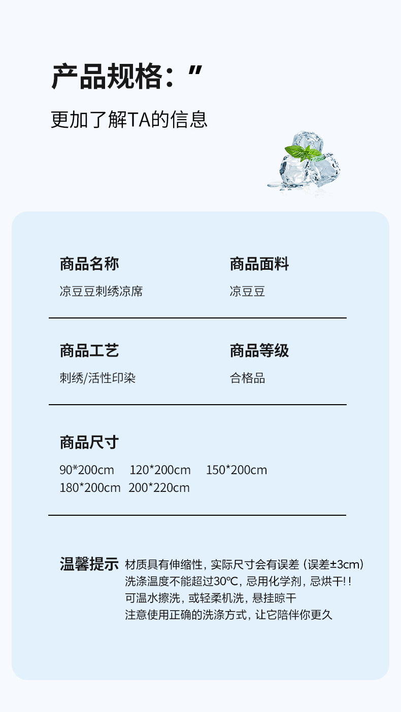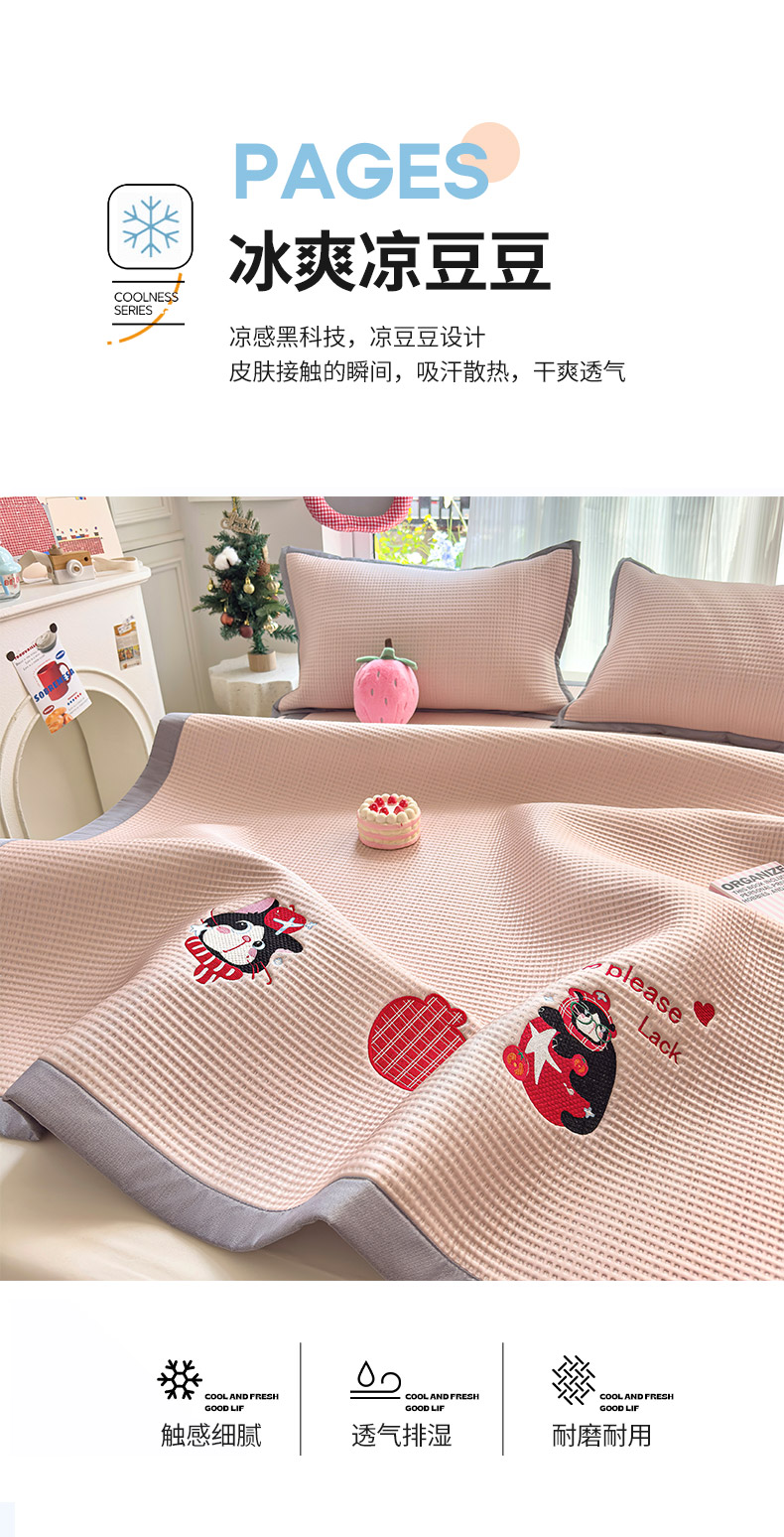 商品名称:圣比熊 2026春夏新款卡通印加绣花凉豆豆绣花凉席席子 萌宠果趣