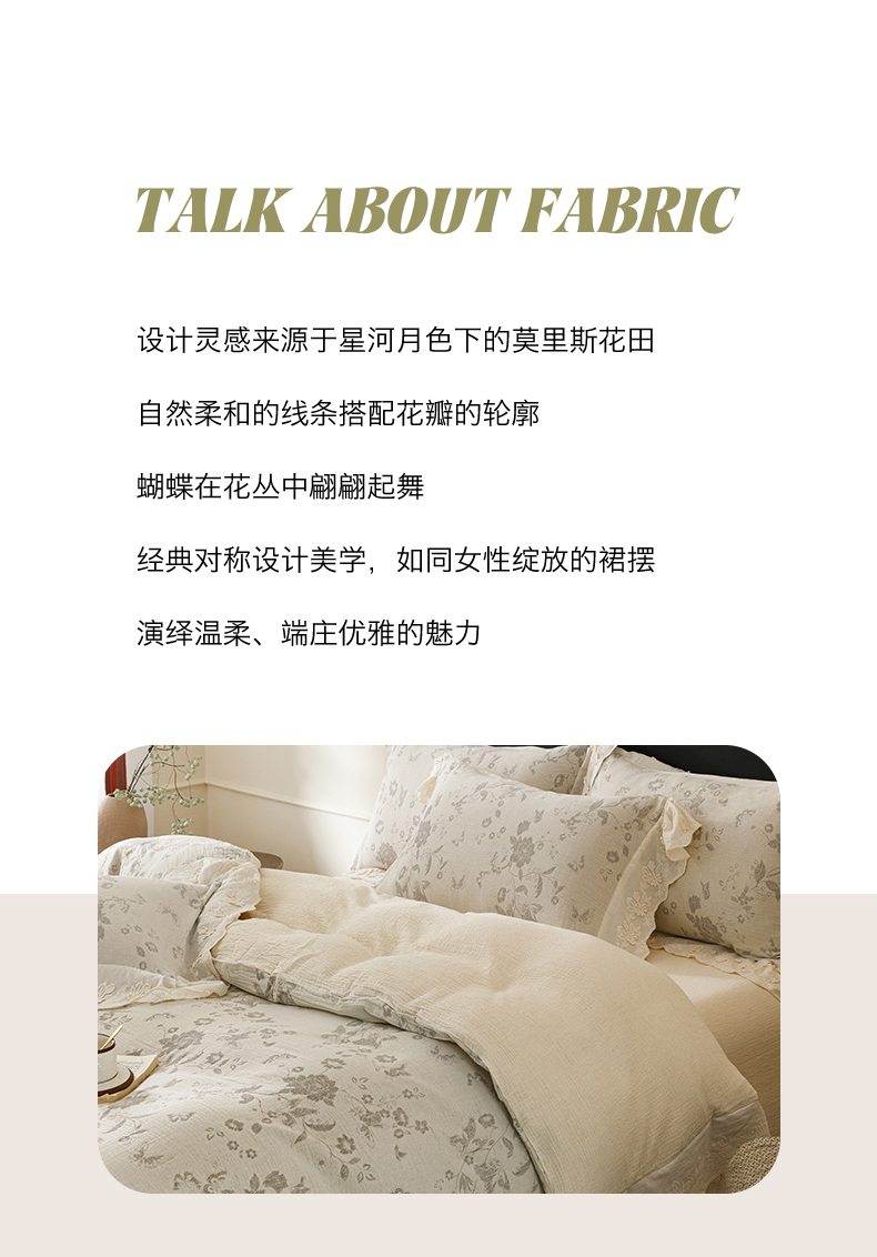 (总)瑞米家居 2025新款A类棉麻提花花边款四件套-蝶恋花,蝶恋花-粉色,蝶恋花-红咖,蝶恋花-芥末绿,蝶恋花-米色,蝶恋花-中灰