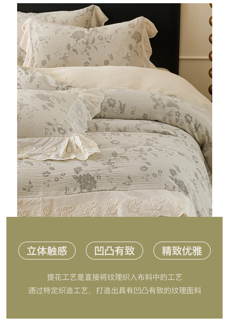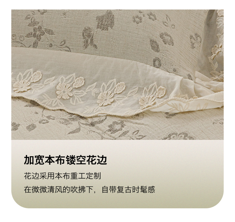 (总)瑞米家居 2026新款A类棉麻提花花边款四件套-翩然乐语,翩然乐语-粉,翩然乐语-红咖,翩然乐语-芥末绿,翩然乐语-深灰