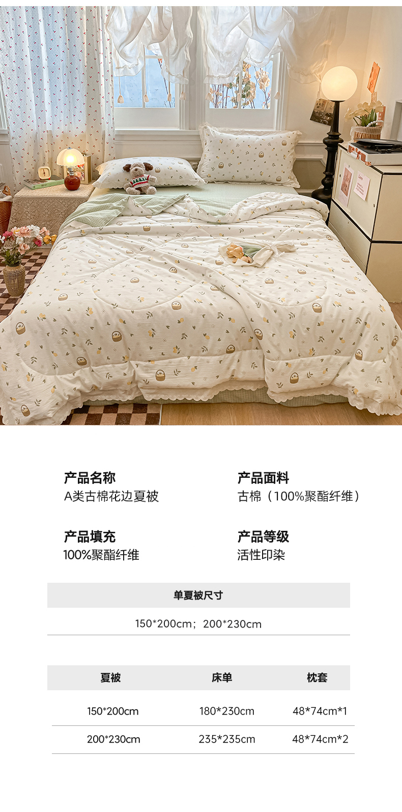 (总)欧妮家纺 2026新款A类古棉花边夏被空调被子,夏被-花影,夏被-碟栖,夏被-粉海星谣,夏被-粉蔷织,夏被-花境,夏被-结语,夏被-鹿踪,夏被-猫语,夏被-奶芙犬,夏被-奶咖犬格,夏被-苹果小象,夏被-青柠果篮,夏被-狮野花集,夏被-兔盯花语,夏被-兔序,夏被-杏棠,夏被-织本碟