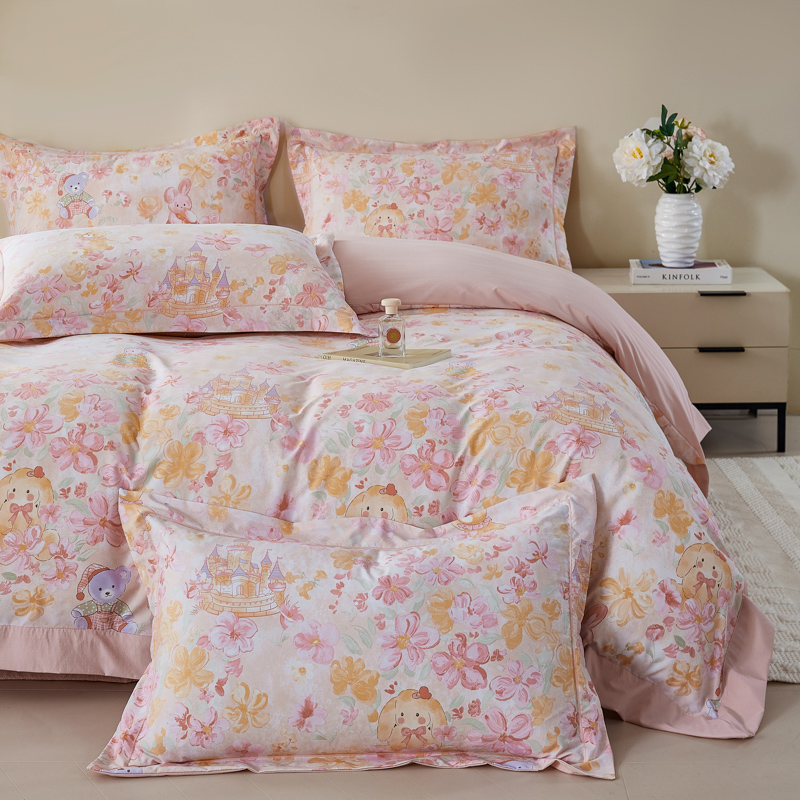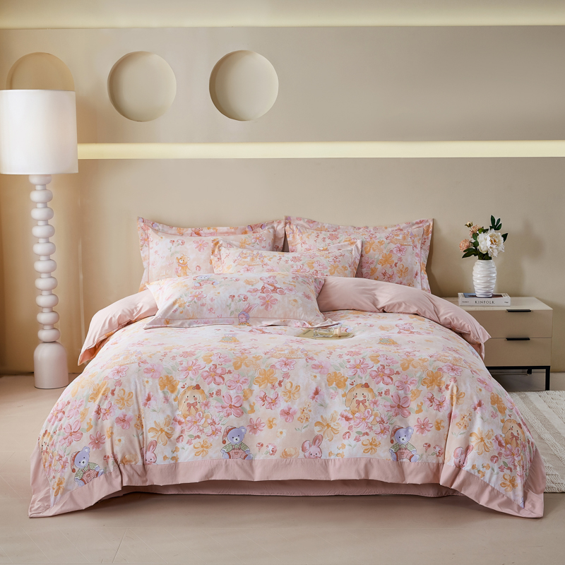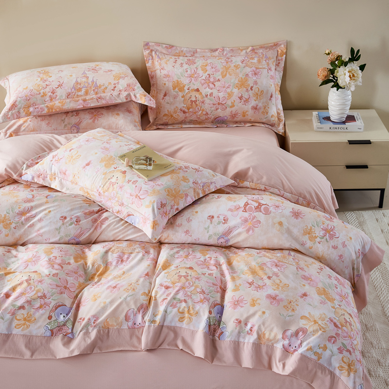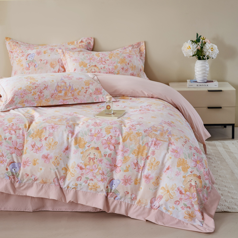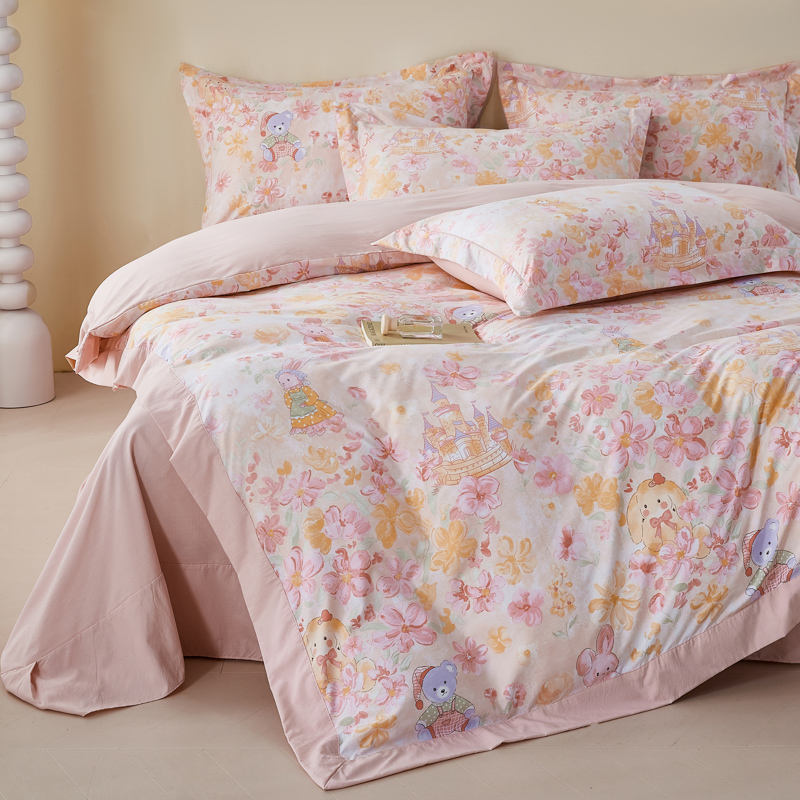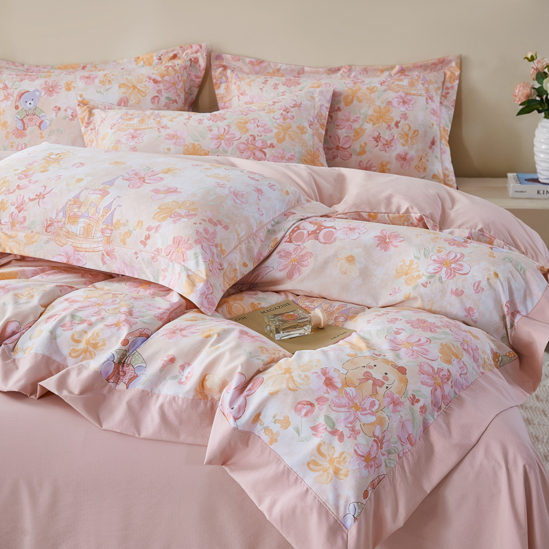 漫仙阁家纺 2026新款宽边四件套 粉萌乐园