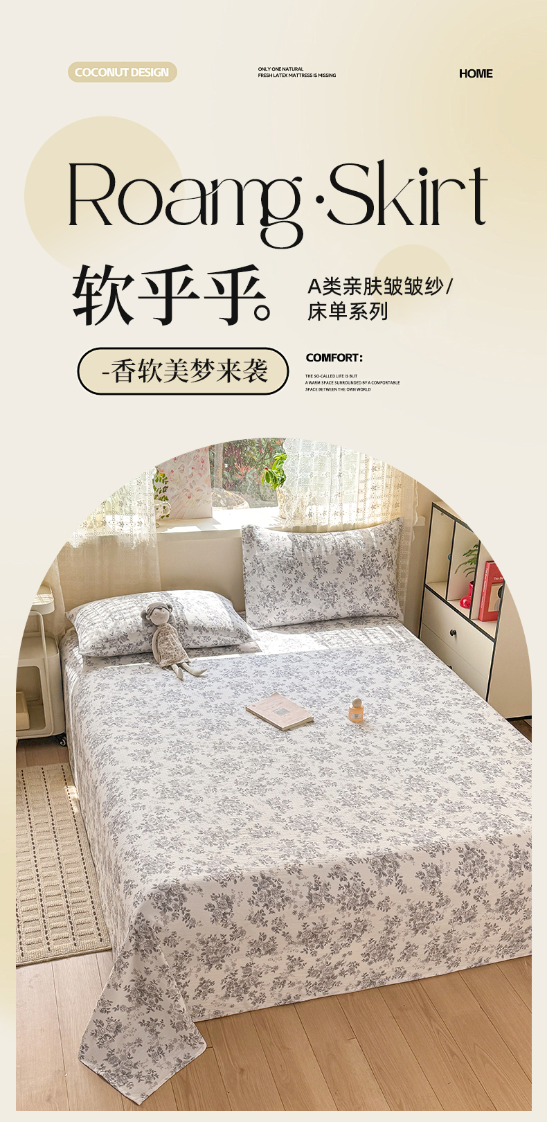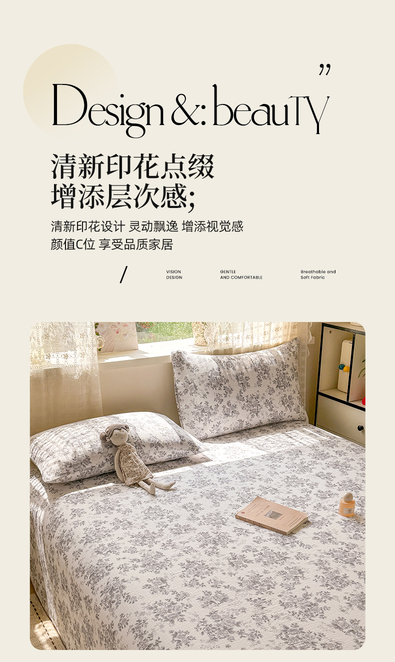 (总)丝芙妮家居 2026春夏新款皱皱棉双层纱泡芙棉床单 床单单件,晨光-黄,晨光-灰,花簇,怀旧-兰,牧歌,顽宠,雅蔓,樱桃,云蝶-粉,云蝶-兰,知锦,组合图仅供展示不可下单