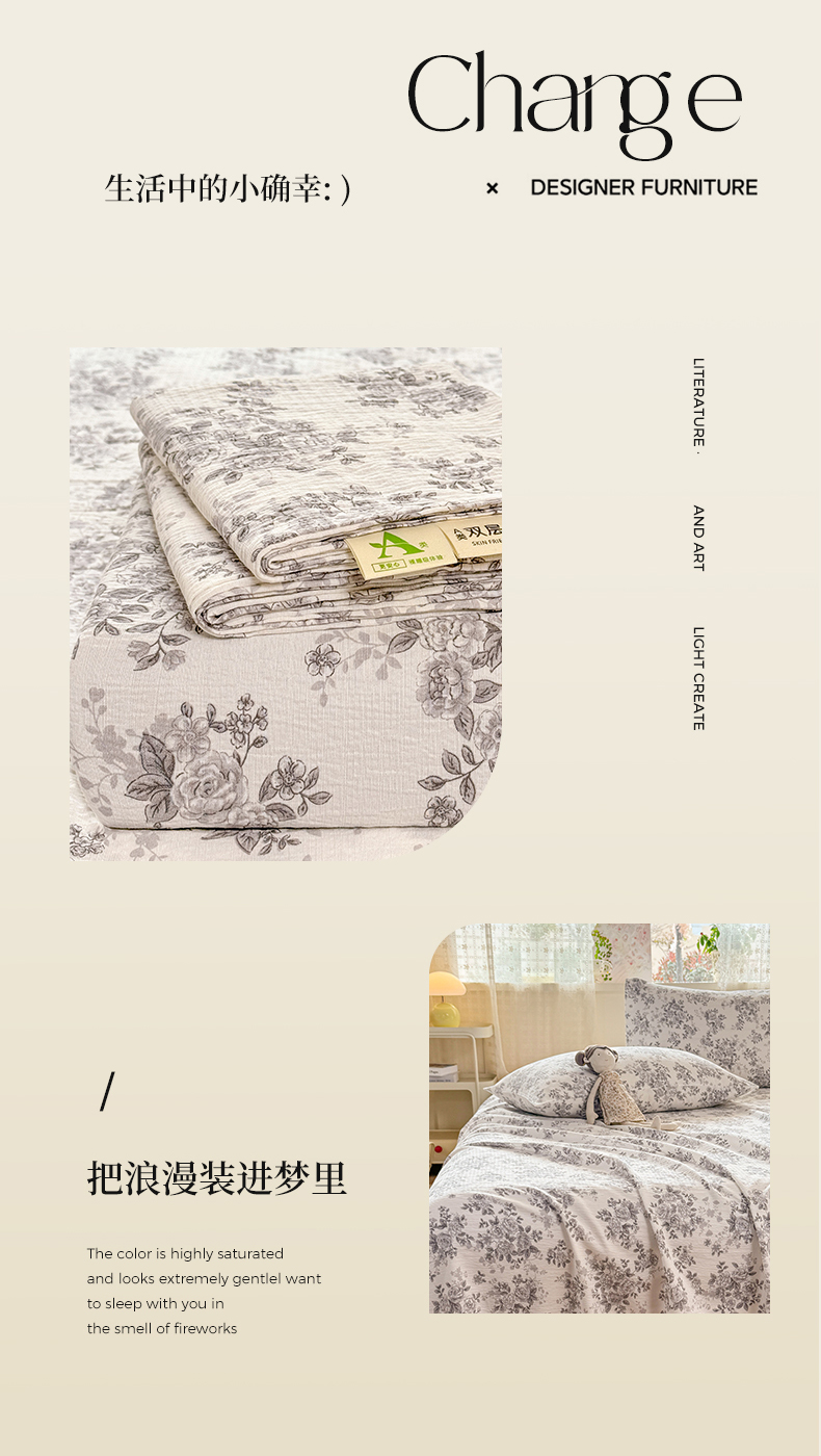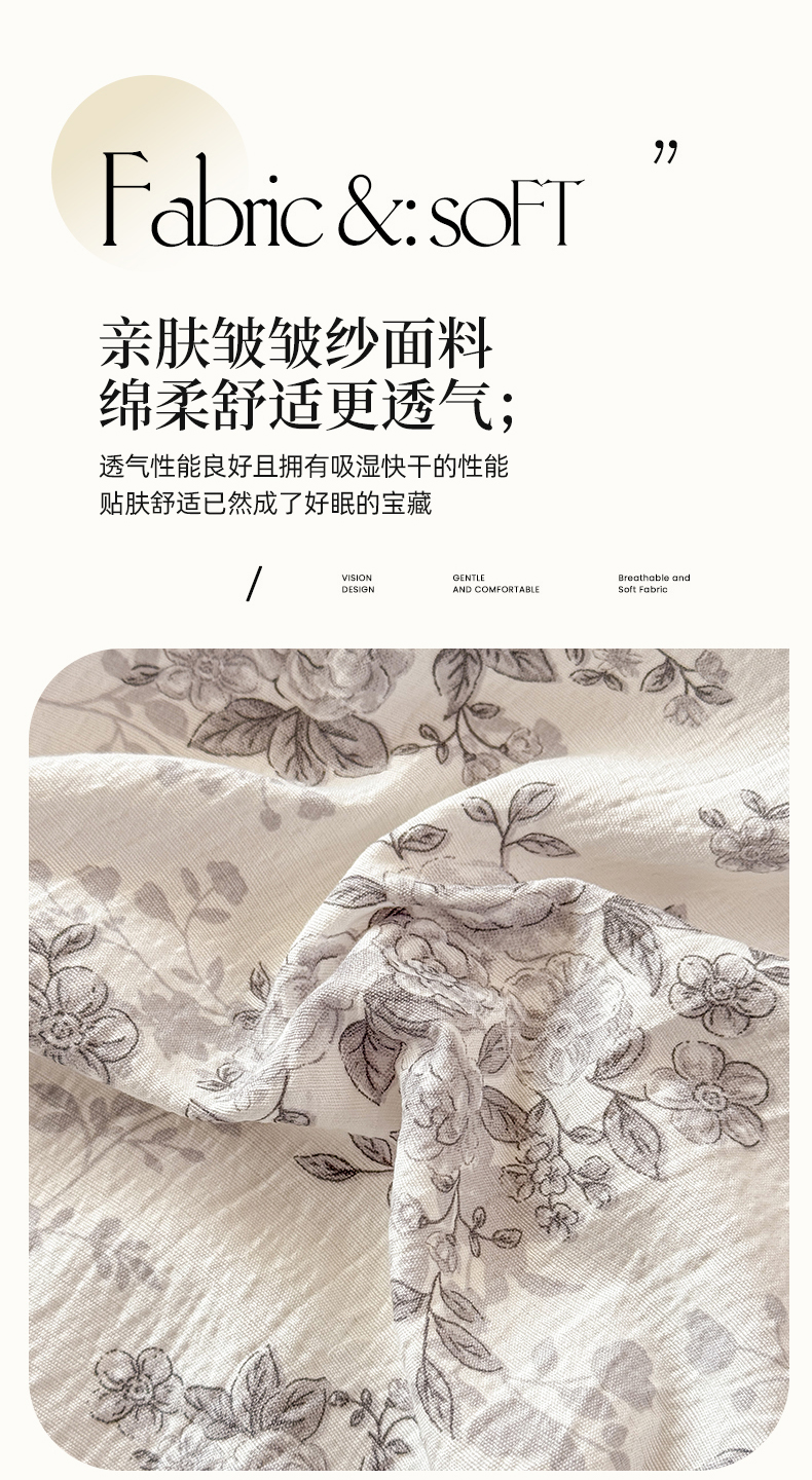 (总)丝芙妮家居 2026春夏新款皱皱棉双层纱泡芙棉四件套,晨光-黄,花簇,怀旧-兰,牧歌,顽宠,雅蔓,樱桃,晨光-灰,云蝶-粉,云蝶-兰,知锦