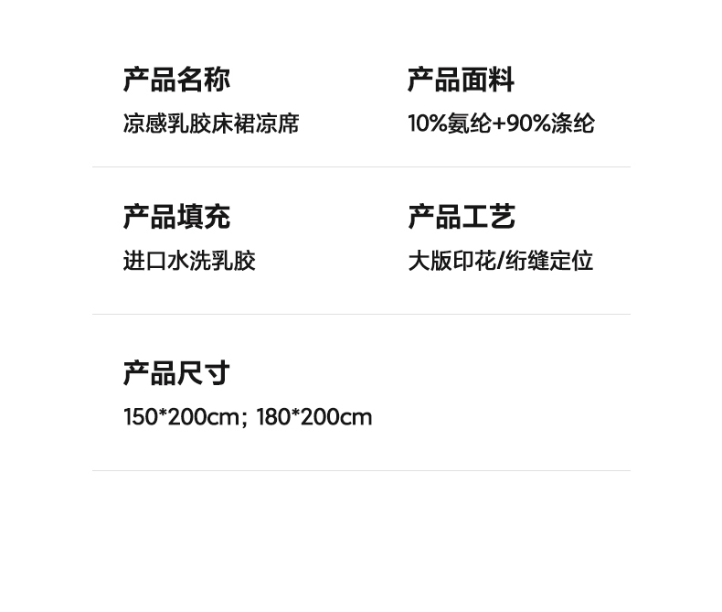 商品名称:RYB红黄兰 2026新款ins床裙款大版冰皮凉感水洗乳胶加厚6mm凉席席子三件套 海盐玛奇