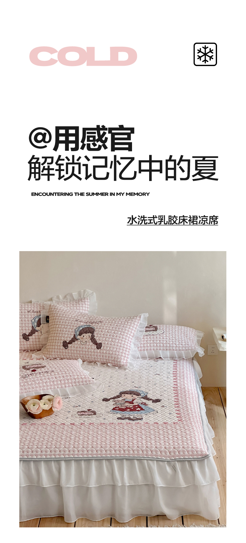(总)RYB红黄兰 2026新款ins床裙款大版冰皮凉感水洗乳胶加厚6mm凉席席子三件套,粉粉蛋糕,海盐玛奇,浅草月野