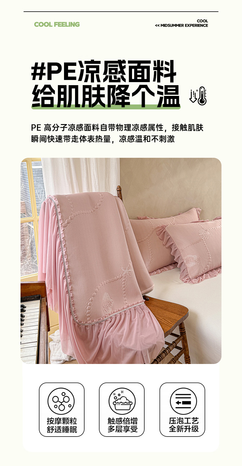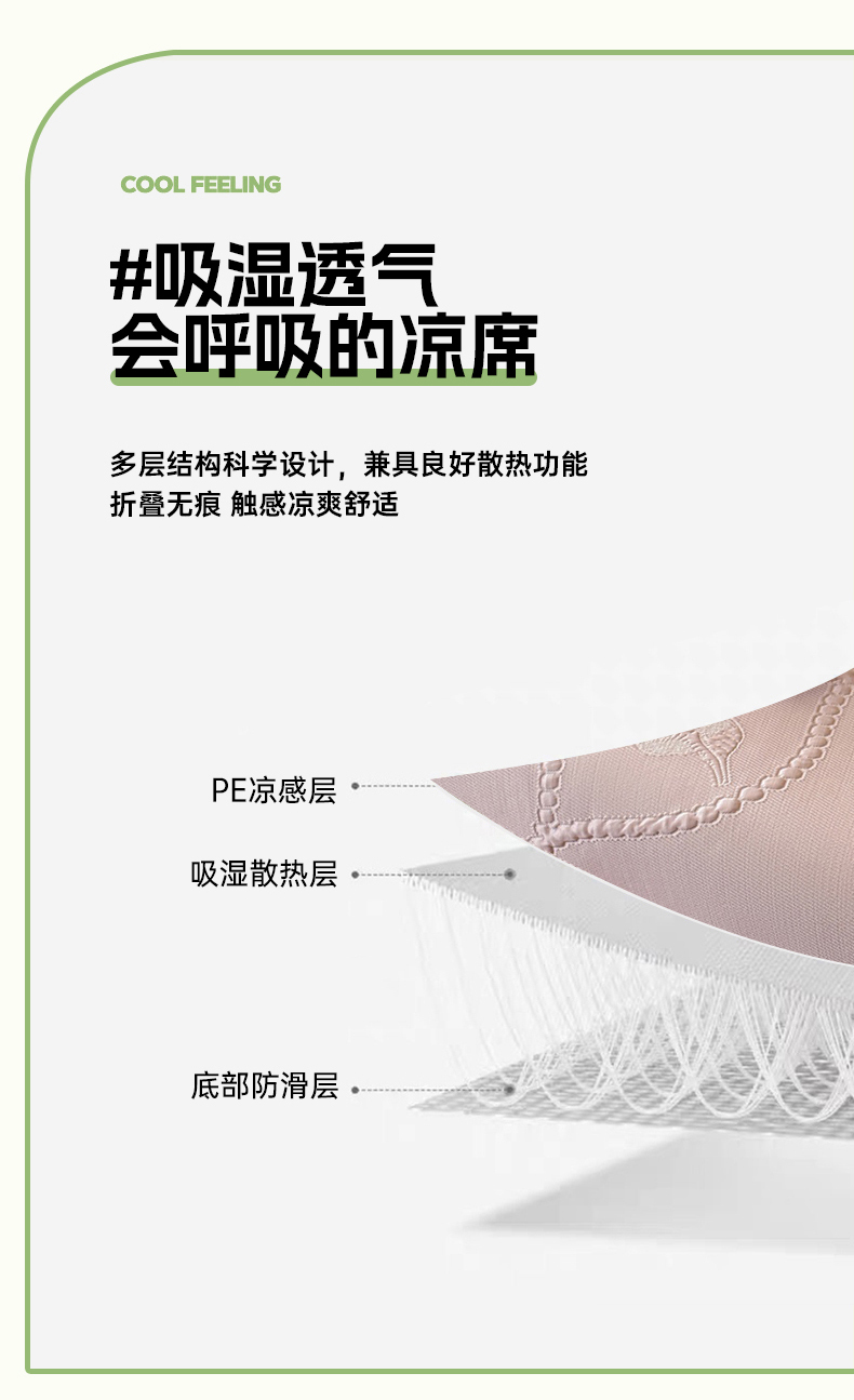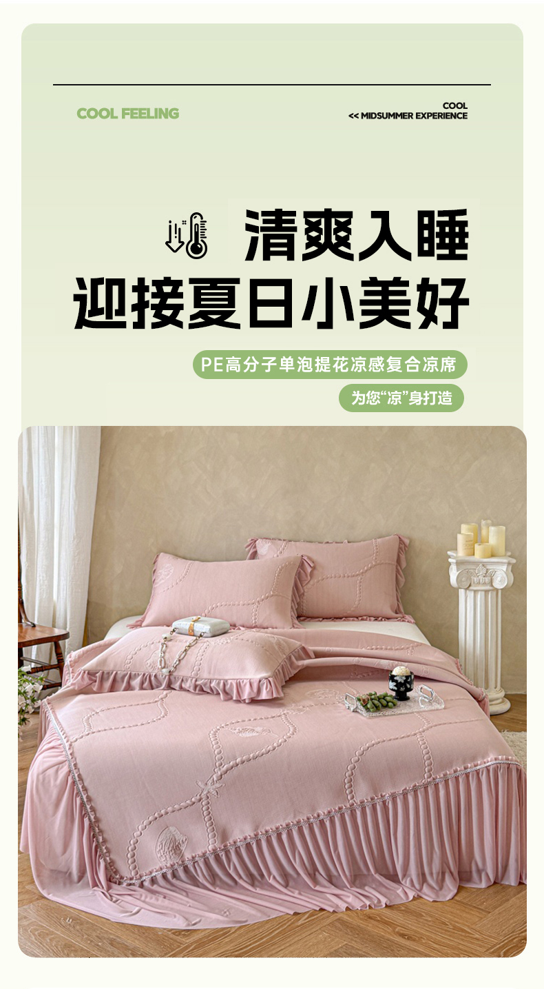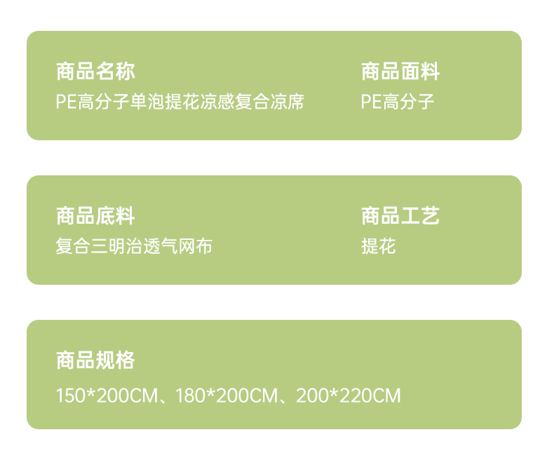 商品名称:(总)赫本家纺 2026新款PE高分子单泡提花凉感复合凉席三件套