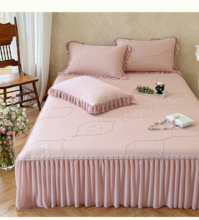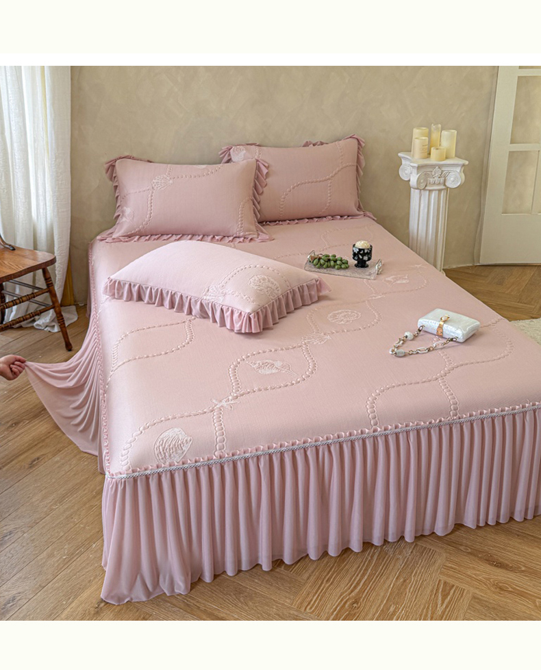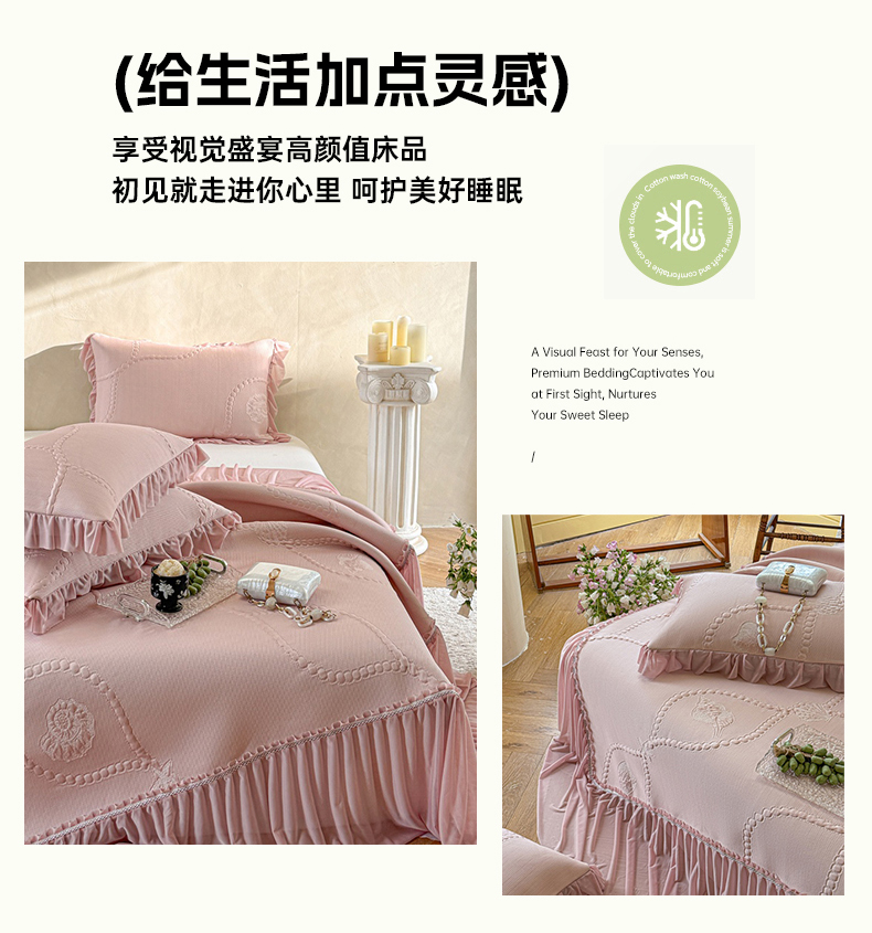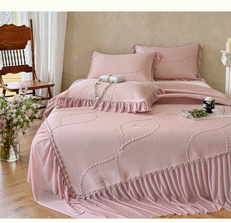 赫本家纺 2025高克重牛奶绒花边床盖款四件套 山居,山居