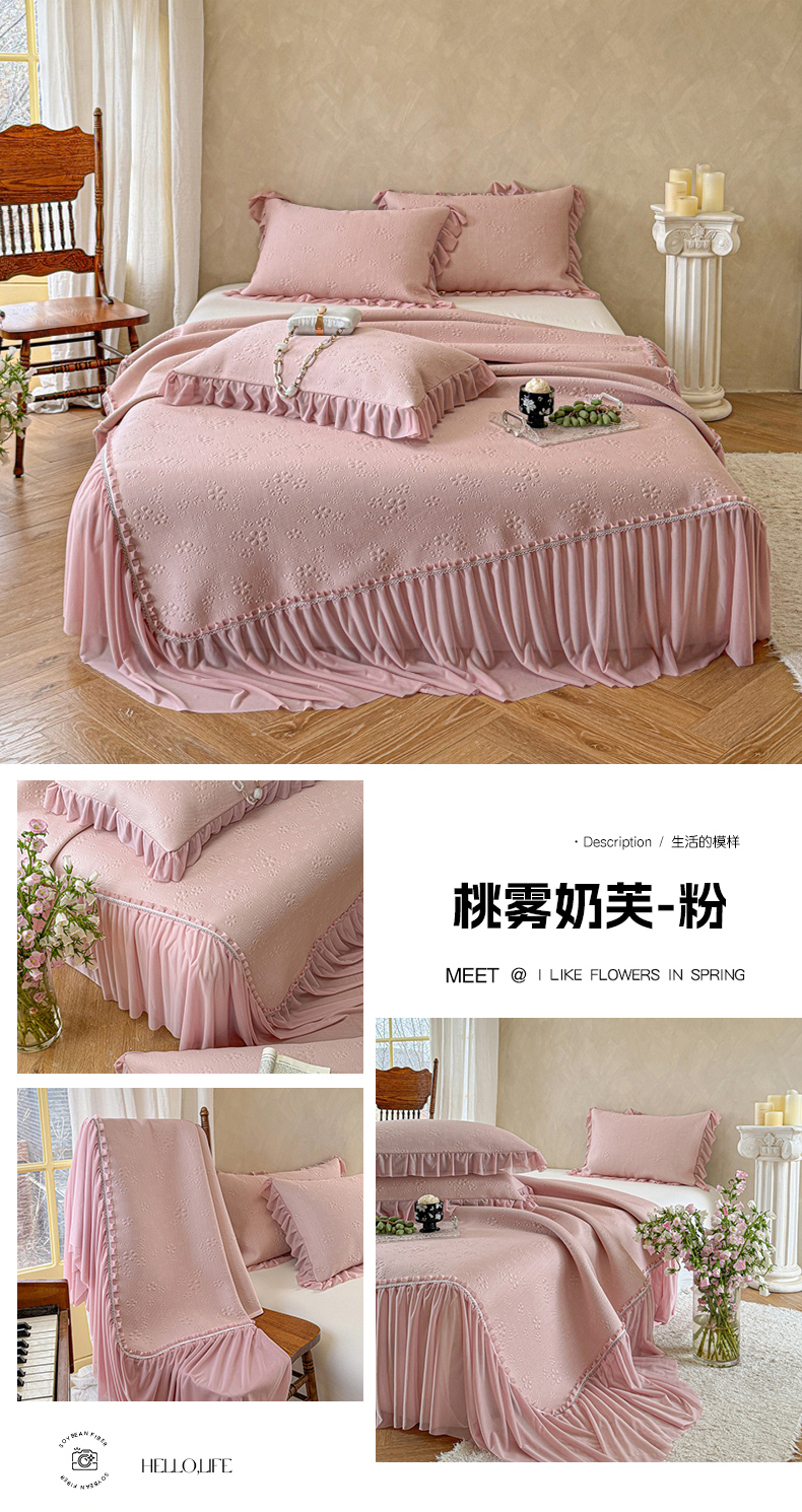 (总)赫本家纺2025新款泡泡纱夏被 夏被四件套,粉咖,嫩黄,嫩绿,少女粉,水绿,微蓝,雾紫,烟灰