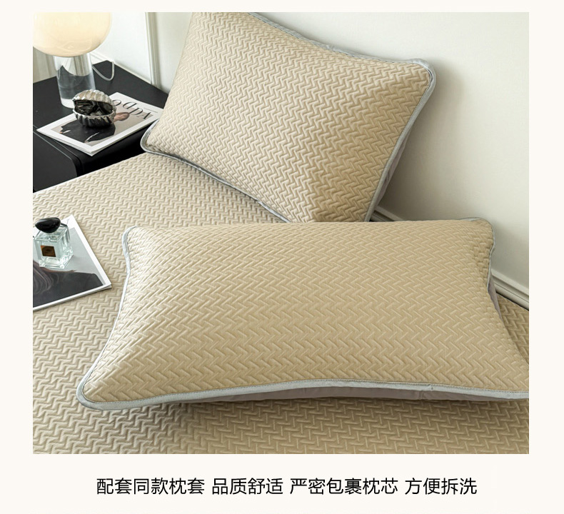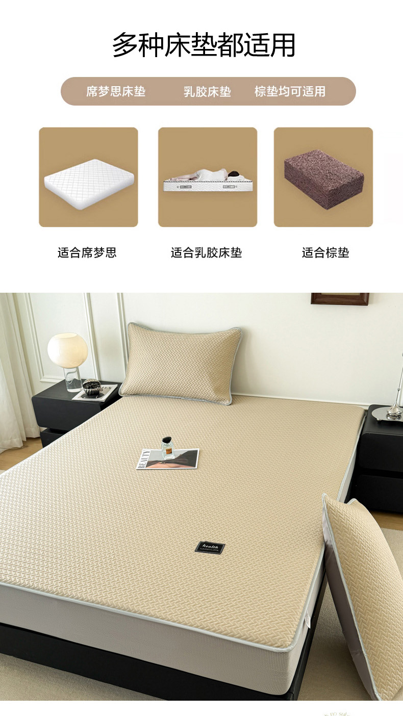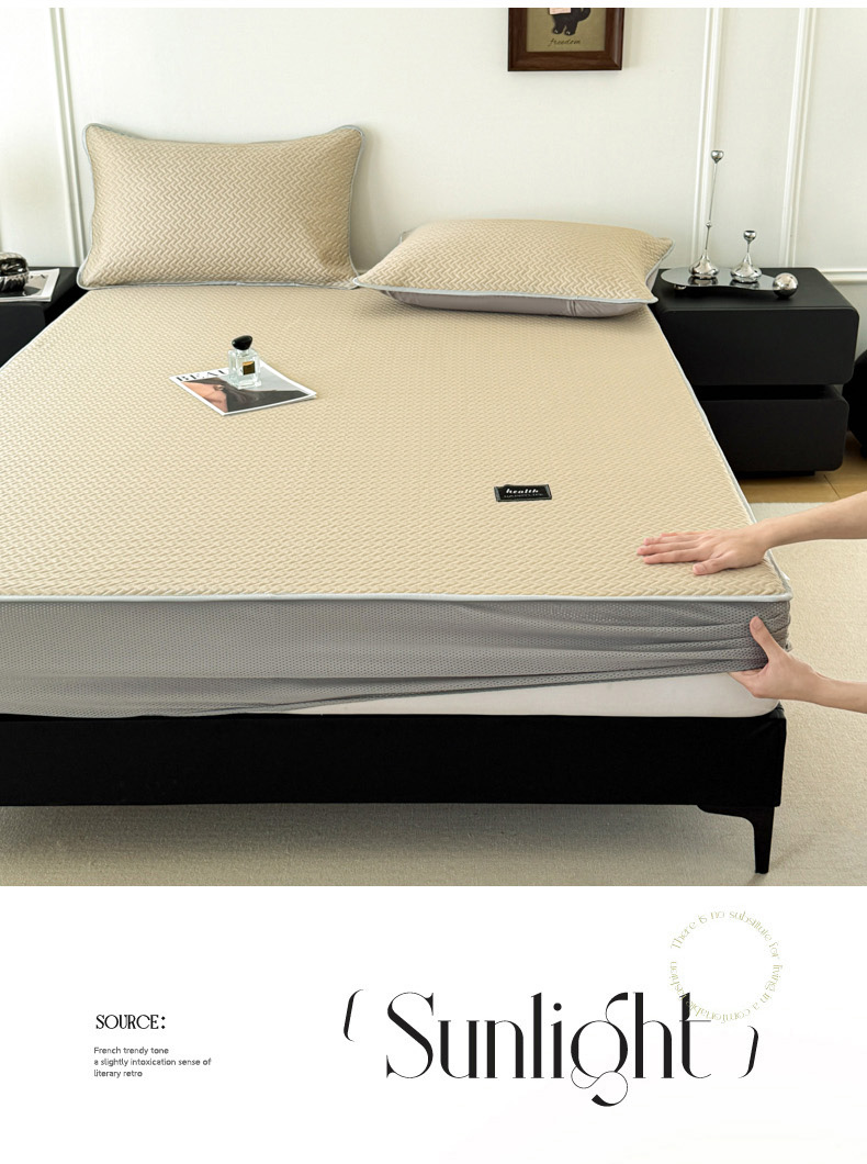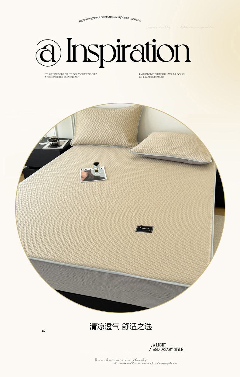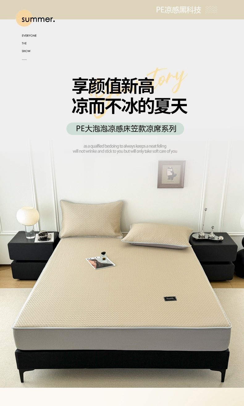 倾慕家纺 2026春夏新款全PE冰豆豆全包围床笠款凉席席子 箭纹卡其