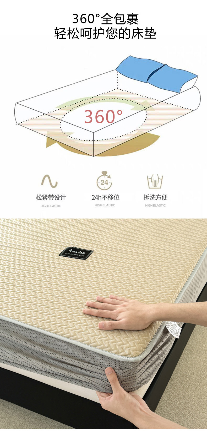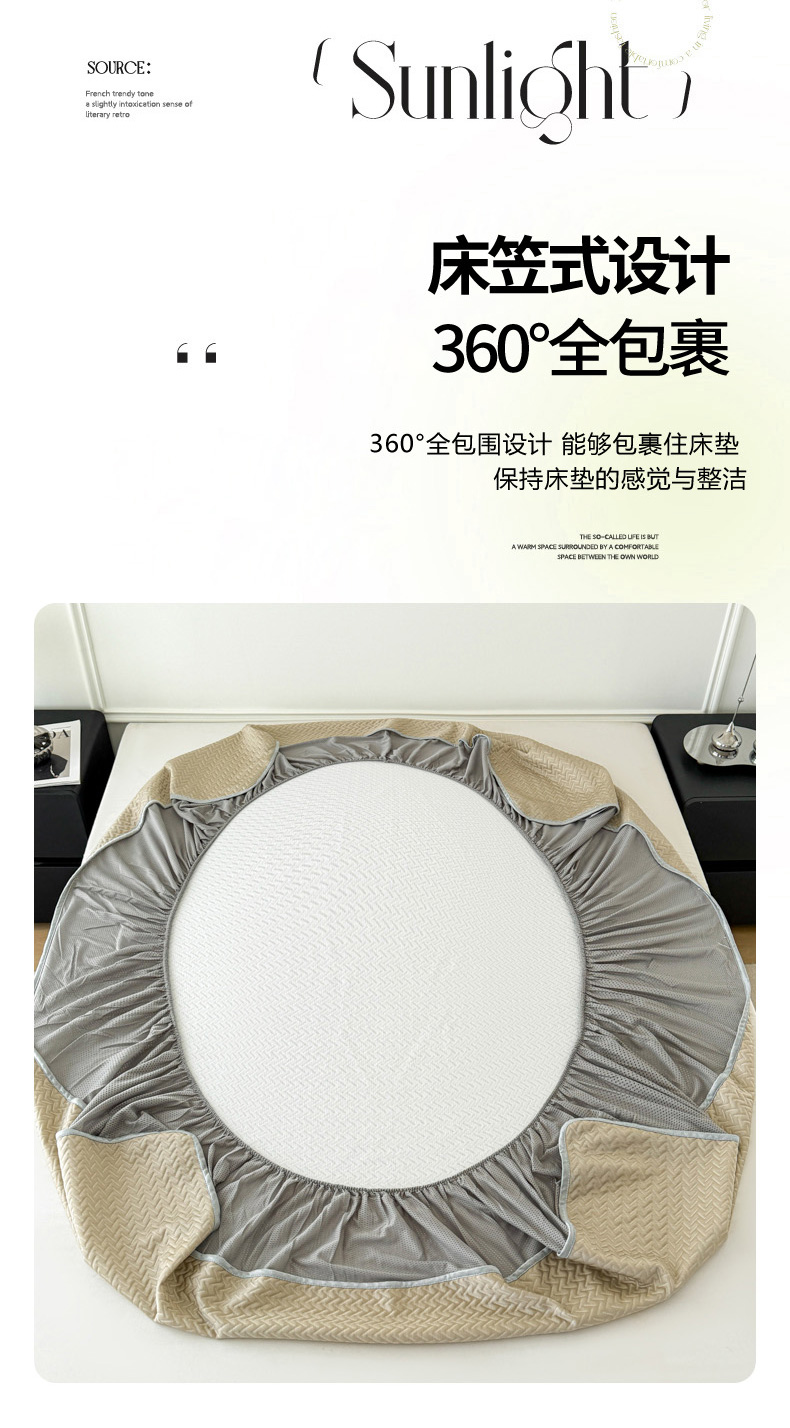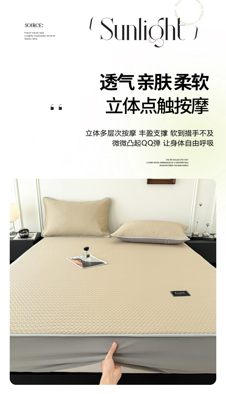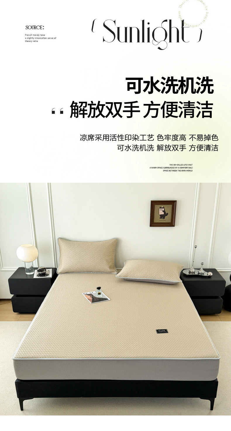 倾慕家纺 2026春夏新款全PE冰豆豆全包围床笠款凉席席子 箭纹卡其