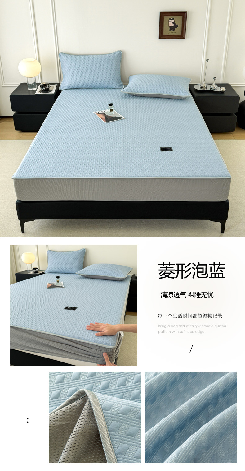 (总)倾慕家纺 2026春夏新款全PE冰豆豆全包围床笠款凉席席子,箭纹粉,箭纹灰,箭纹卡其,箭纹蓝,箭纹绿,箭纹米白,菱形泡粉,菱形泡灰,菱形泡蓝,菱形泡绿,菱形泡米白,菱形泡香槟