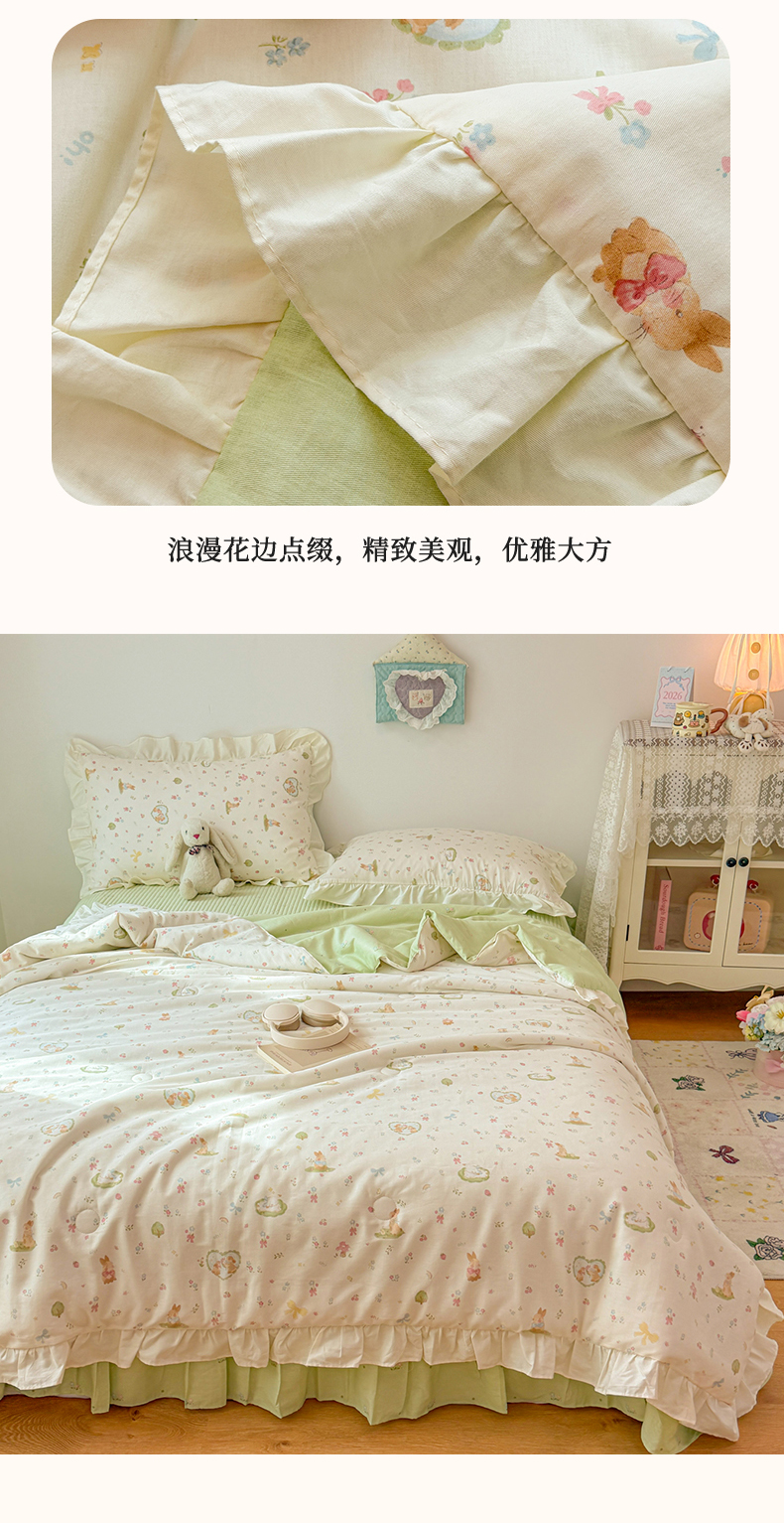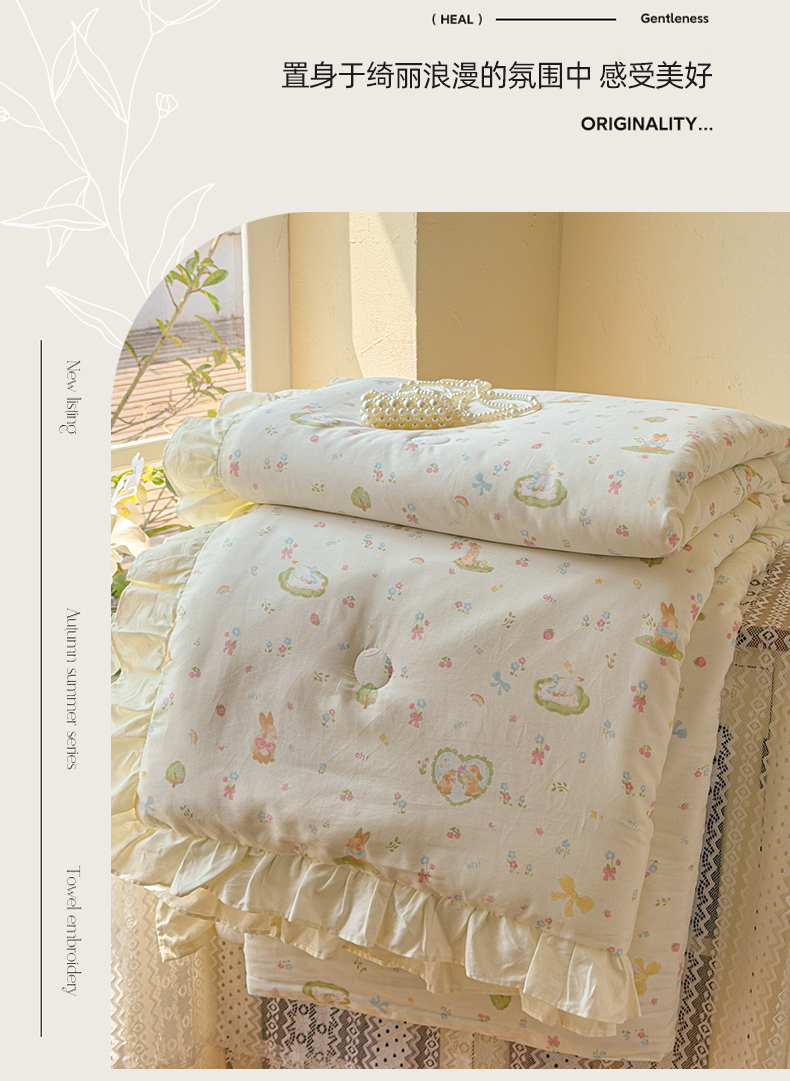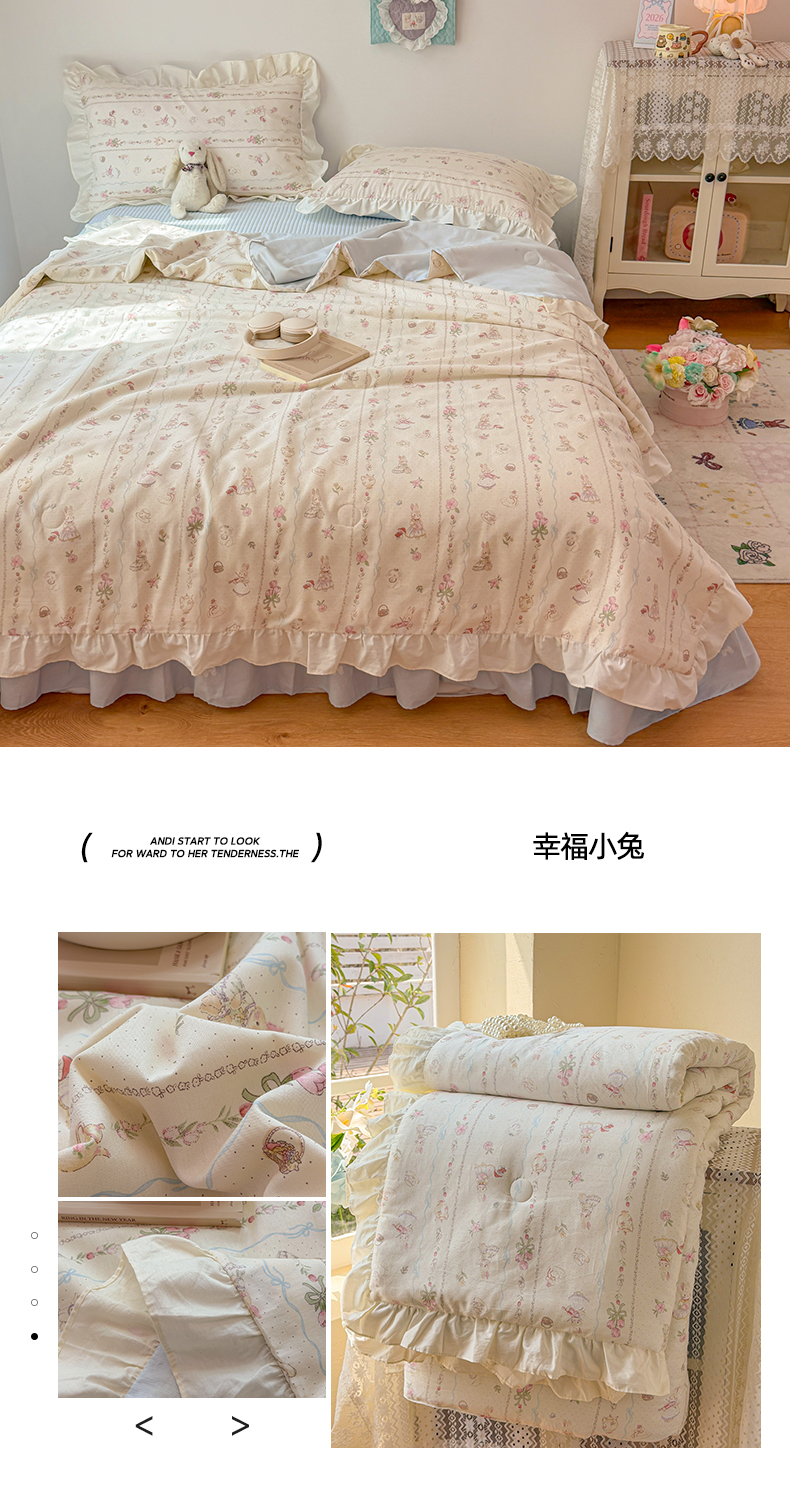 当前位置: 91家纺网 > 商品网购 > 被子 > 夏被 > 女子家纺 2026新款全棉花边夏被全棉床盖夏被四件套 兔与花笺