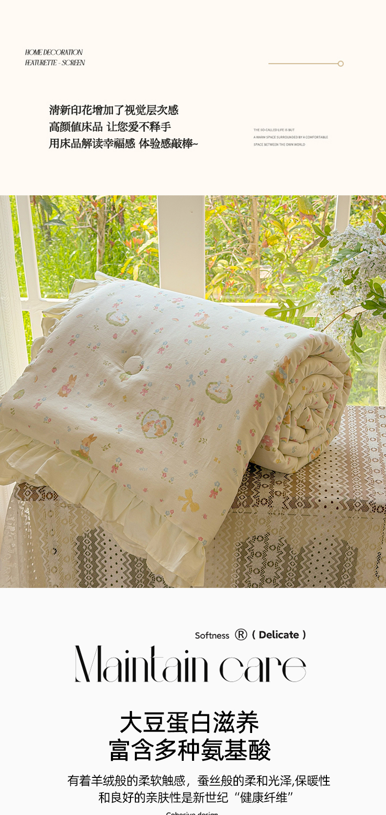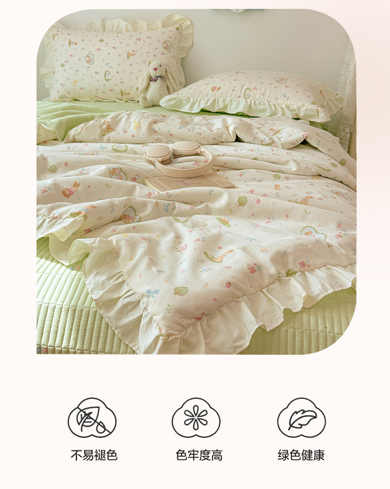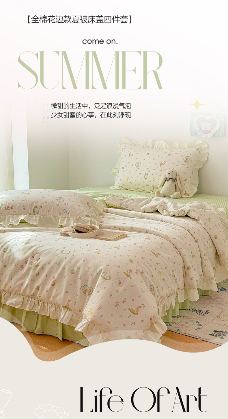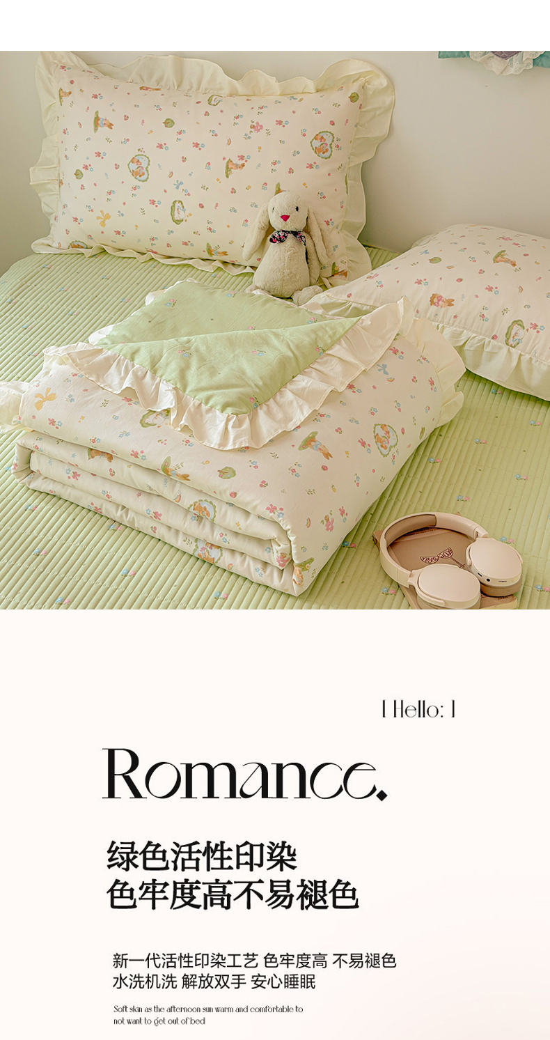 当前位置: 91家纺网 > 商品网购 > 被子 > 夏被 > 女子家纺 2026新款全棉花边夏被全棉床盖夏被四件套 兔与花笺