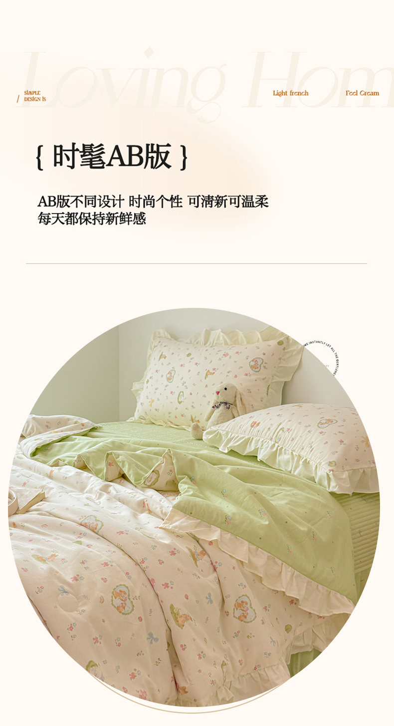 • 91家纺网 家纺一手货源 找家纺 女子家纺 2026新款全棉花边夏被全棉床盖夏被四件套 兔与花笺