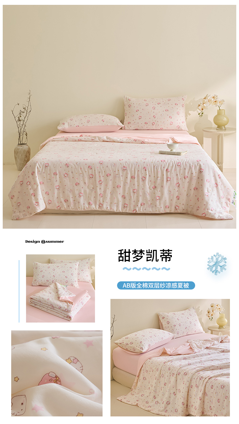 商品名称:宜代光年 2026春夏新款全棉双层纱凉感夏被夏凉被空调被 甜梦凯蒂
