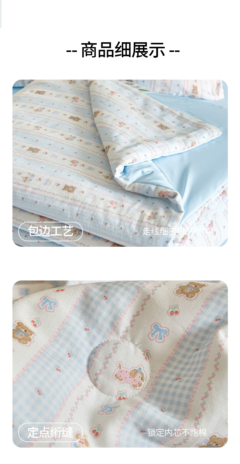 (总)宜代光年 2026春夏新款全棉双层纱凉感夏被夏凉被空调被,海盐小熊,花园小兔,奶杏格调,晴空小兔,森系小熊-粉,森系小熊-绿,甜梦凯蒂,条纹小狗,樱桃粉象,紫雾蔷薇