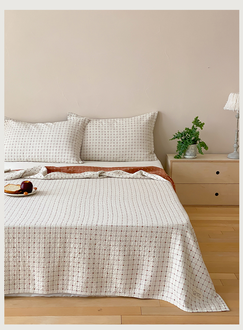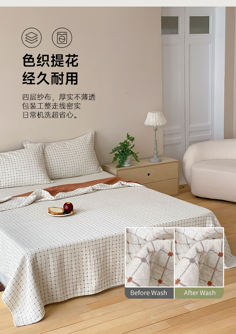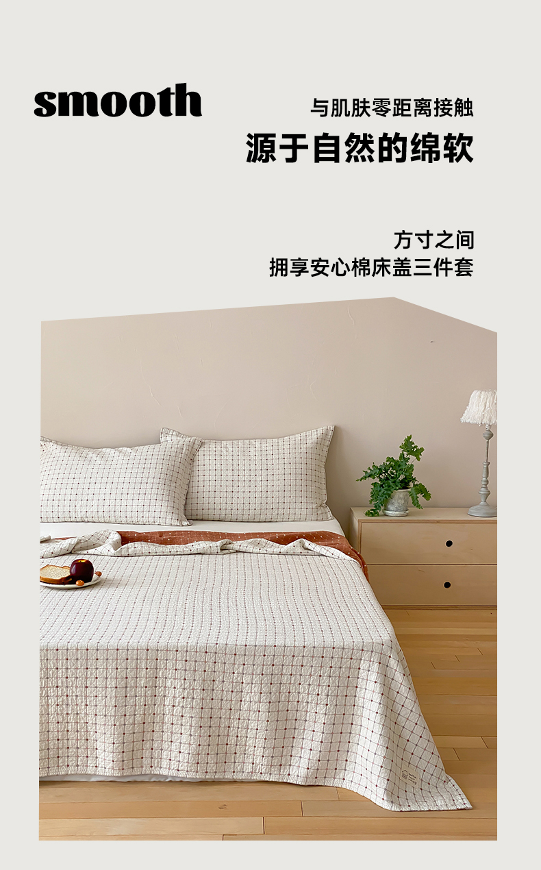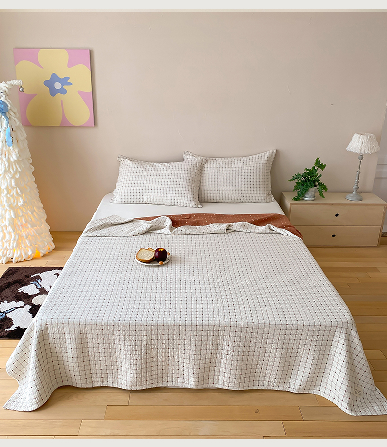 商品名称:麻依 2026新款安心棉床盖三件全棉四层纱布床单 小米格-白色
