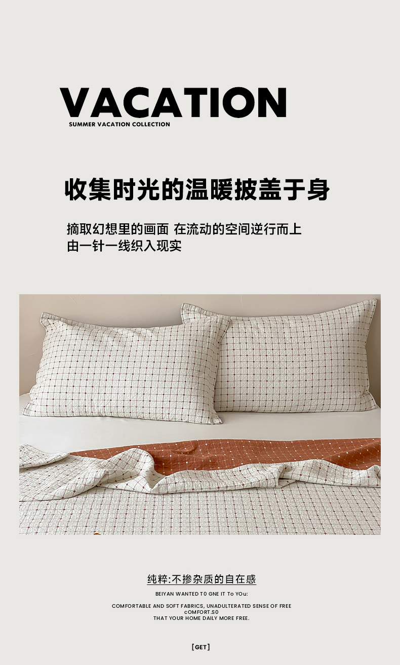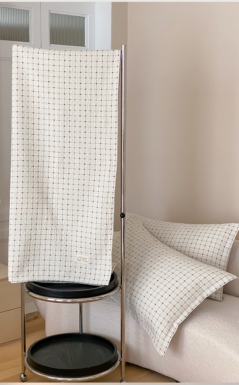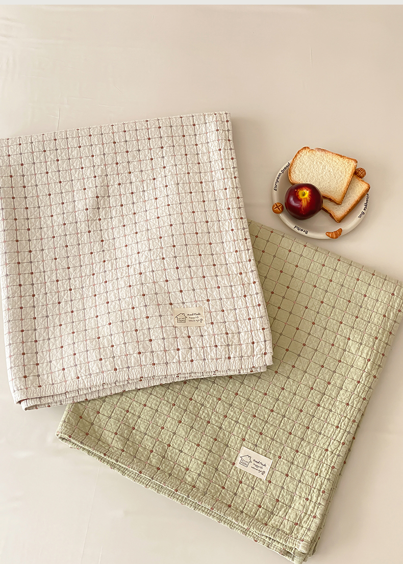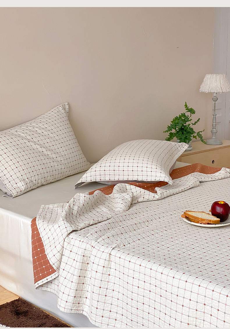 商品名称:麻依 2026新款安心棉床盖三件全棉四层纱布床单 小米格-白色