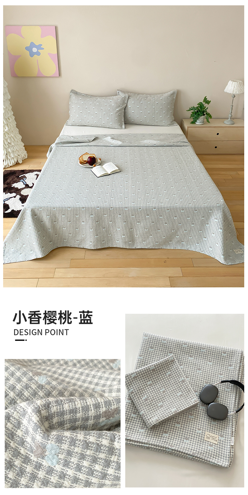 (总)麻依 2026新款安心棉床盖三件全棉四层纱布床单,爱心点点-灰,爱心点点-驼,草莓香-粉,草莓香-米,点点木马-灰,点点木马-蓝,多彩猫咪,花仙猫咪-粉,花仙猫咪-蓝,加州阳光-红,清檬,清梦,松饼小熊-灰,松饼小熊-蓝,条条樱桃-粉,条条樱桃-黄,线条猫咪-蓝,线条猫咪-米,小米格-白色,小米格-绿,小香樱桃-红,小香樱桃-黄,小香樱桃-蓝,星星宝,樱桃KT-橘色,樱桃KT-米色,组合图