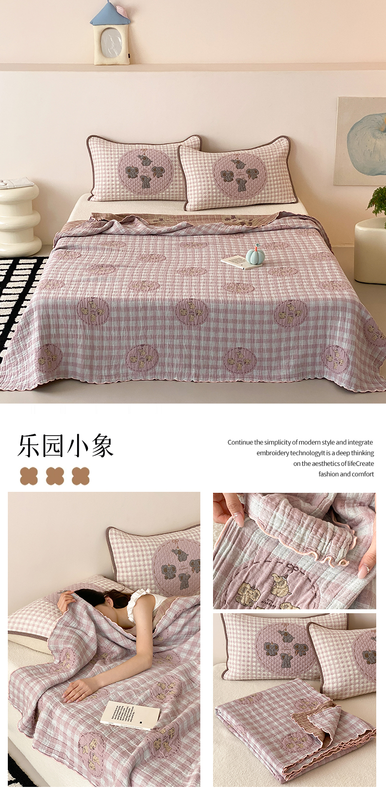 (总)麻依 2026新款软萌纱布床盖三件套系列,斑点小猫,博美,豆豆企鹅,懒床小狗,乐园小象,毛绒小狗,胖胖猫,胖胖企鹅,桃心KT,玩耍小咪,香蕉小猫,杂技萌宠,组合