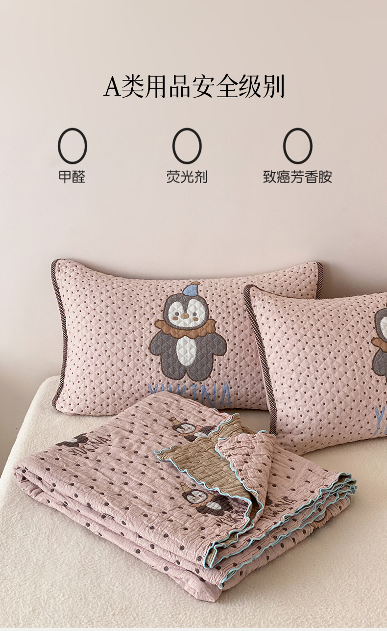 (总)麻依 2026新款软萌纱布床盖三件套系列,斑点小猫,博美,豆豆企鹅,懒床小狗,乐园小象,毛绒小狗,胖胖猫,胖胖企鹅,桃心KT,玩耍小咪,香蕉小猫,杂技萌宠,组合