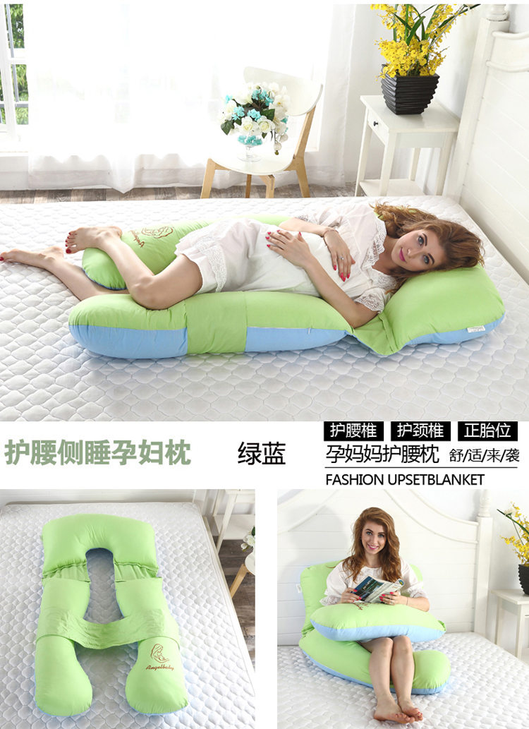 商品名称:浩情国际 133*76全棉+绣花素色绣花可拆卸孕妇枕果绿蓝
