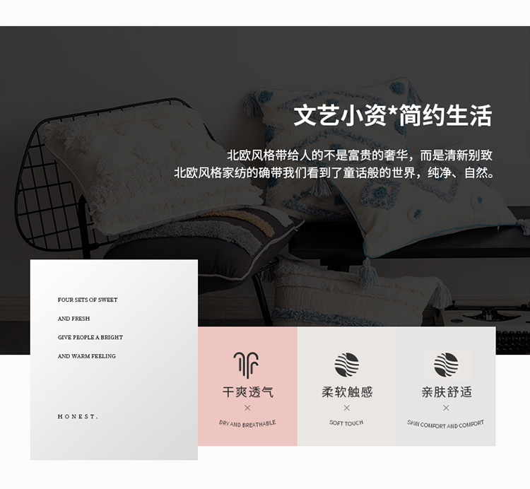 (总)美茉家居跨境电商爆款皮革帆布拼接抱枕黑白印花可拆洗靠垫,更甚,留白,有物,长物