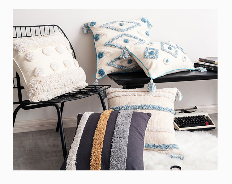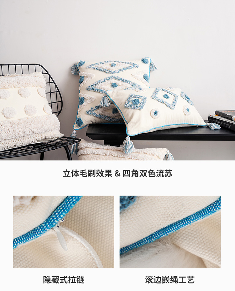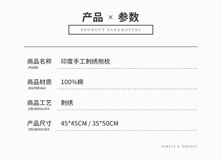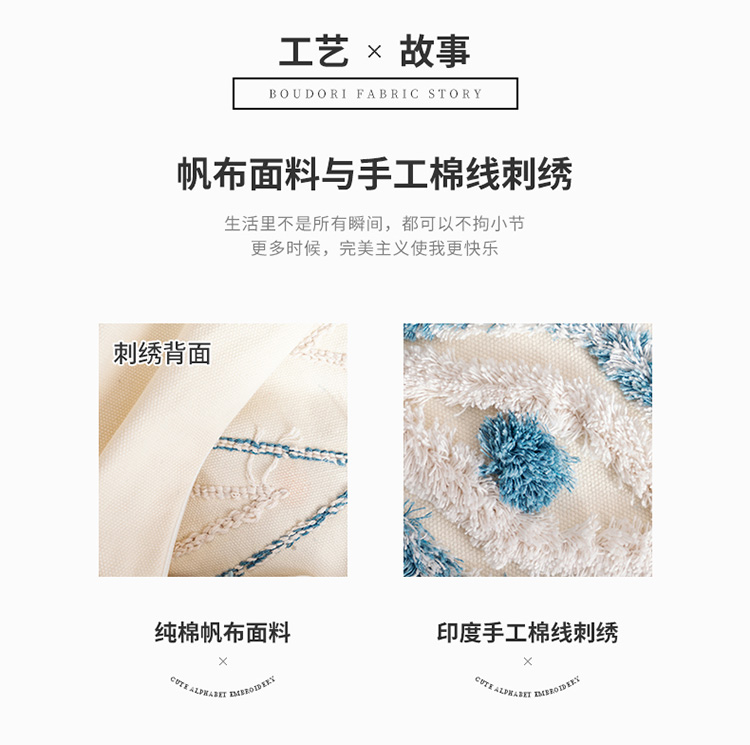 商品名称:美茉家居 2022新品印度手工线绣流苏抱枕纯棉帆布刺绣靠垫