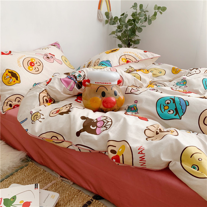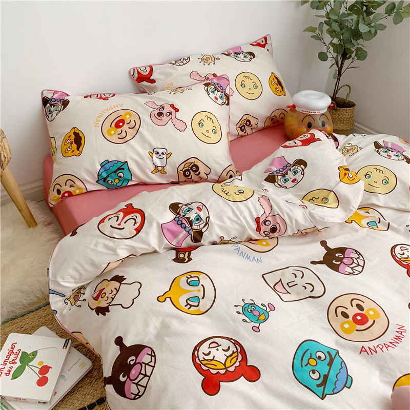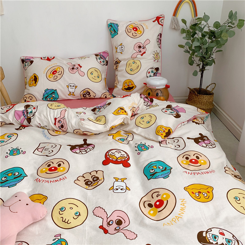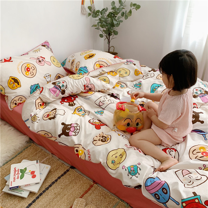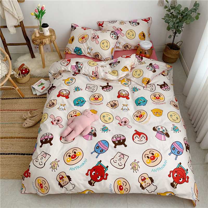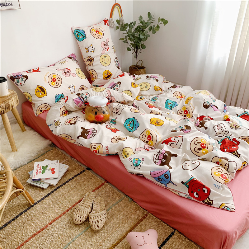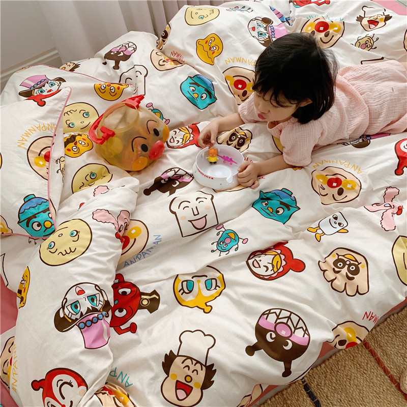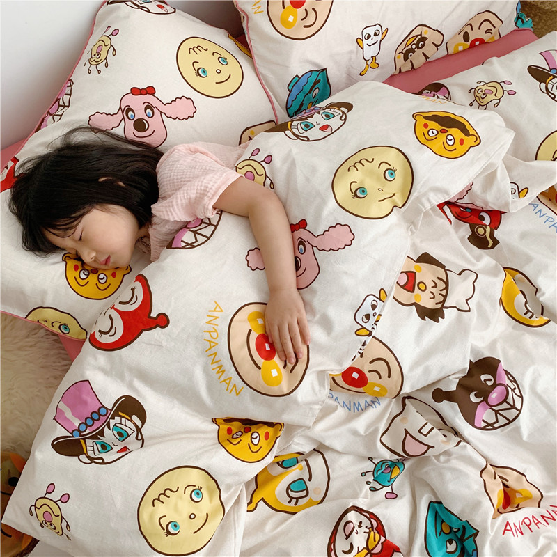 商品名称:时年 2021春夏新款嵌绳款全棉四件套 面包超人粉卡通儿童
