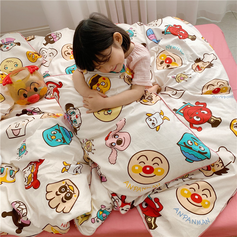 时年 2021春夏新款嵌绳款全棉四件套 面包超人粉卡通儿童