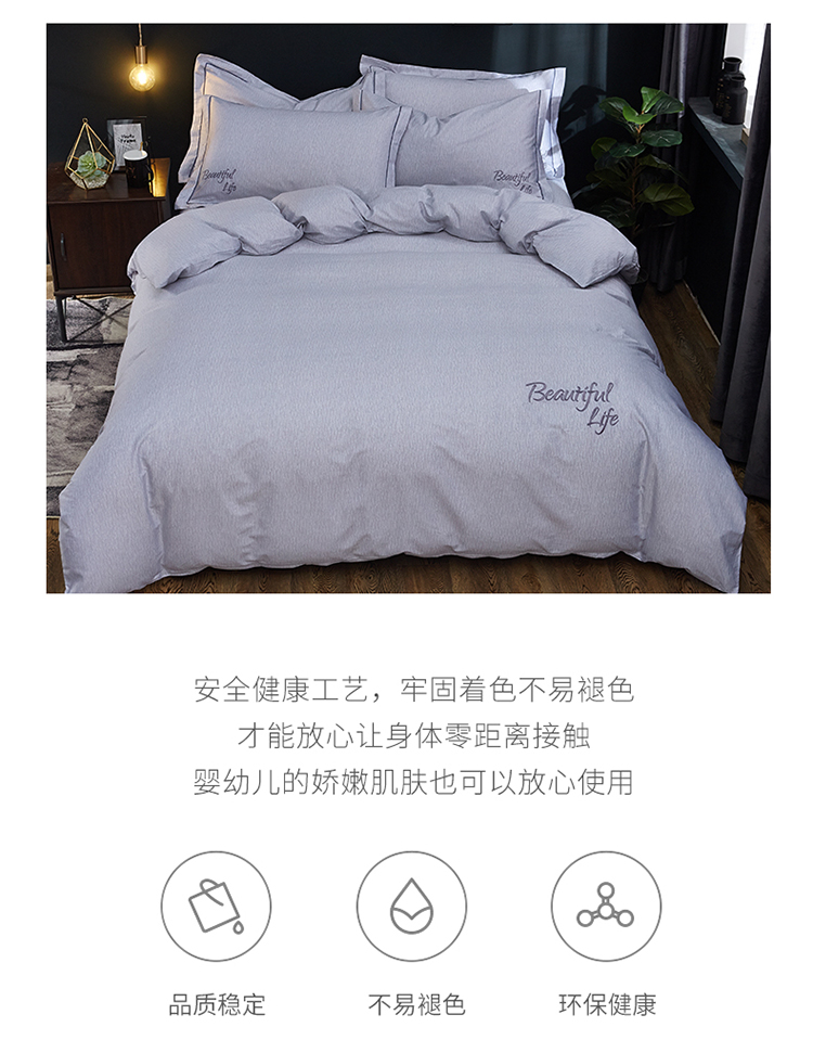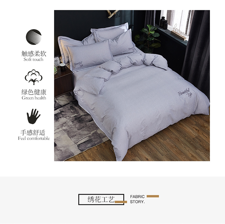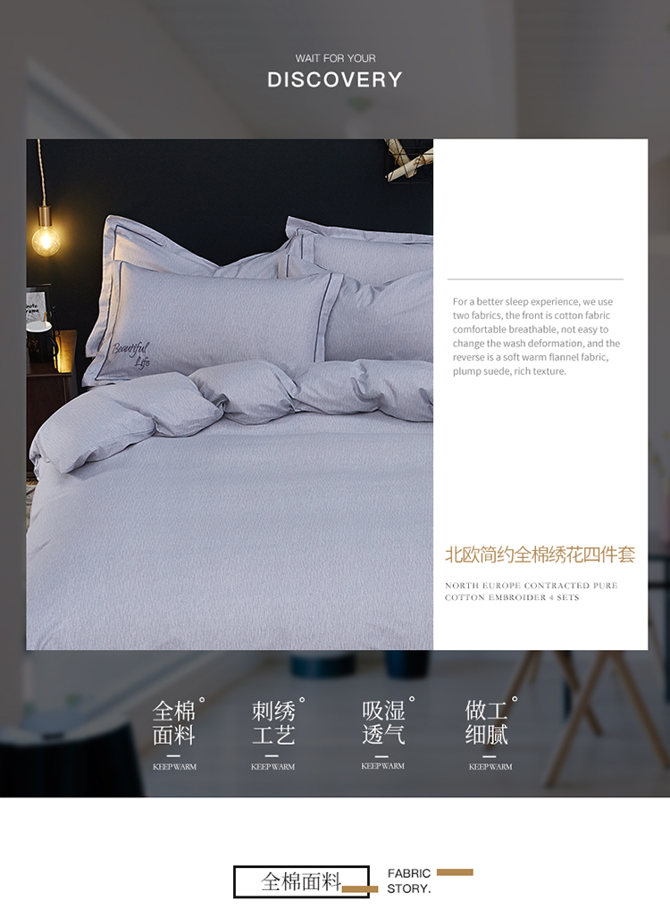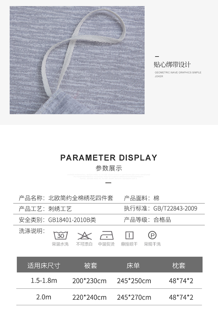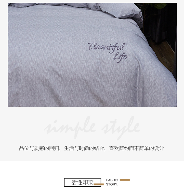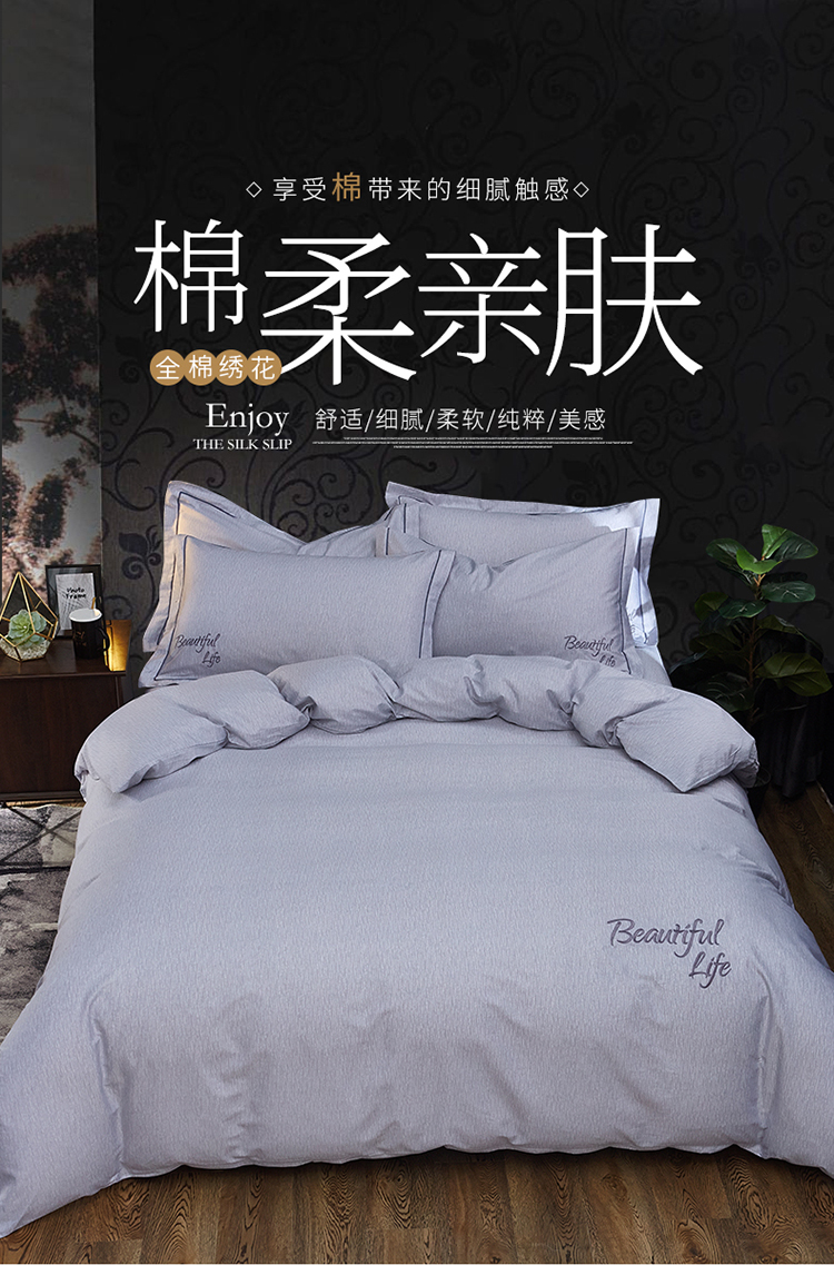 商品名称:雲归梦 北欧简约全棉绣花四件套 圣托里尼-米灰