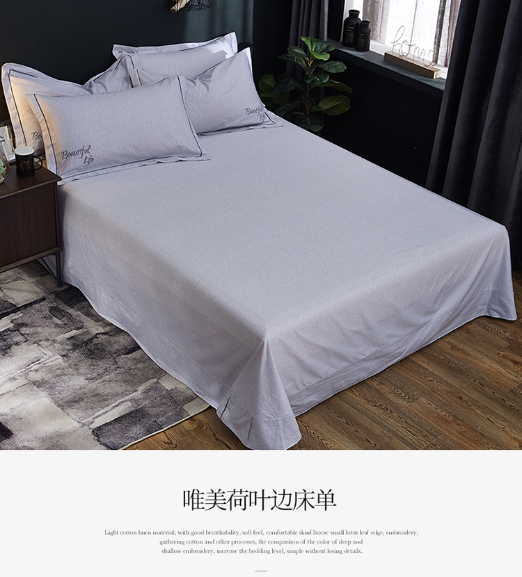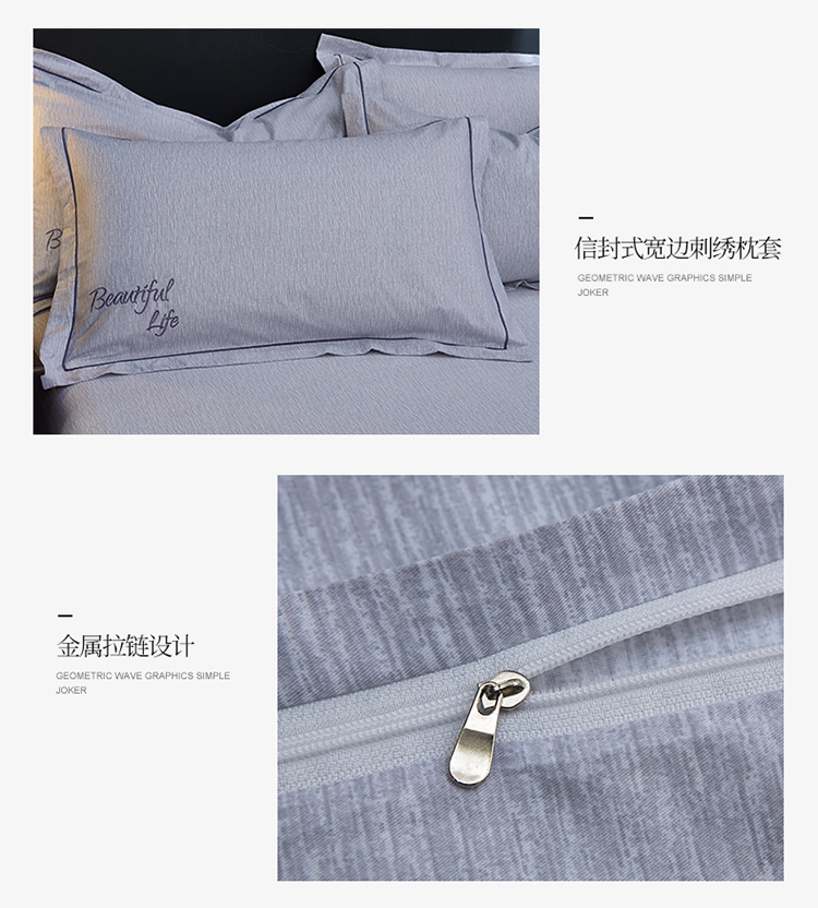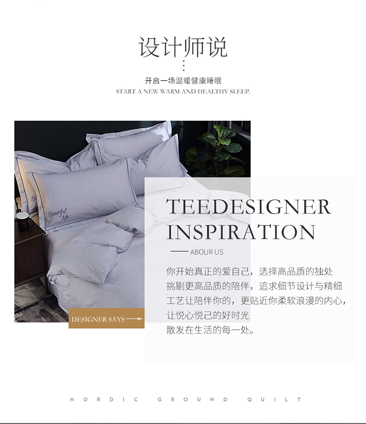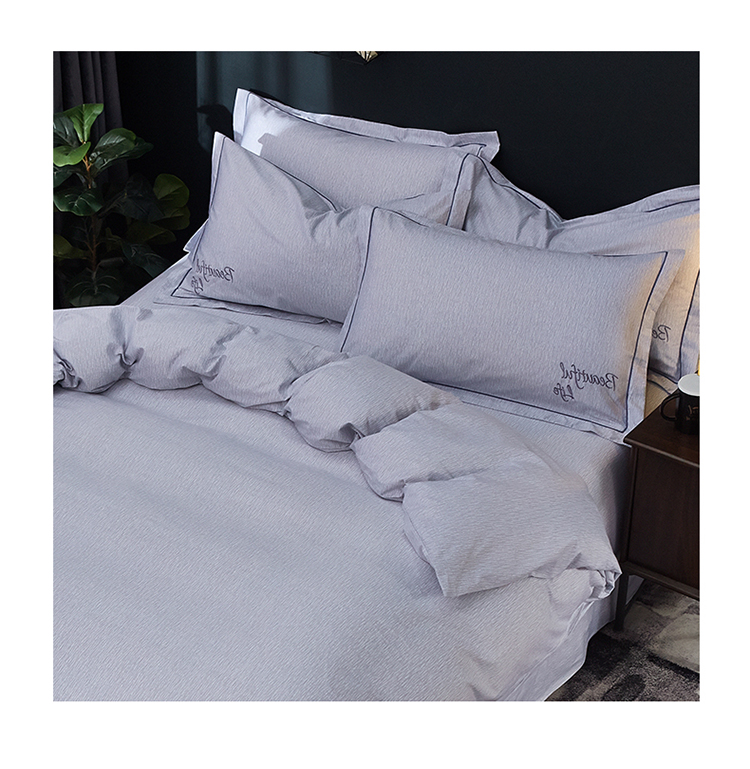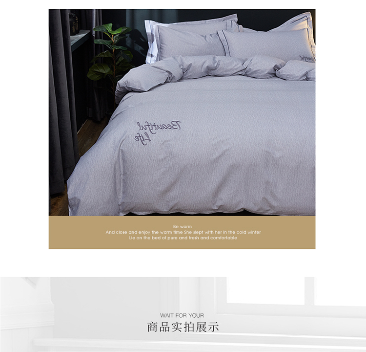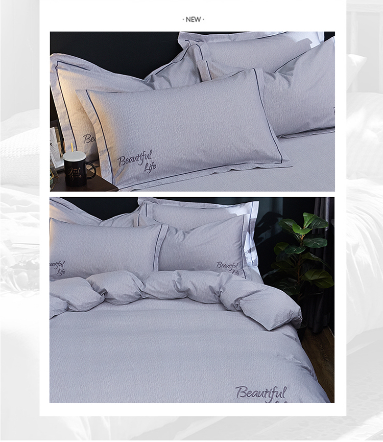 商品名称:雲归梦 北欧简约全棉绣花四件套 圣托里尼-米灰