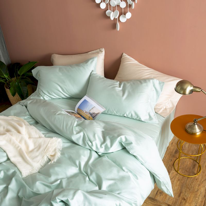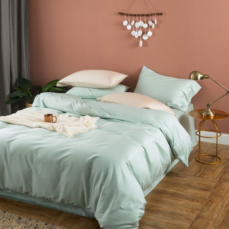 涞澳家纺 2019新款60长绒棉平色简易四件套 艾草绿