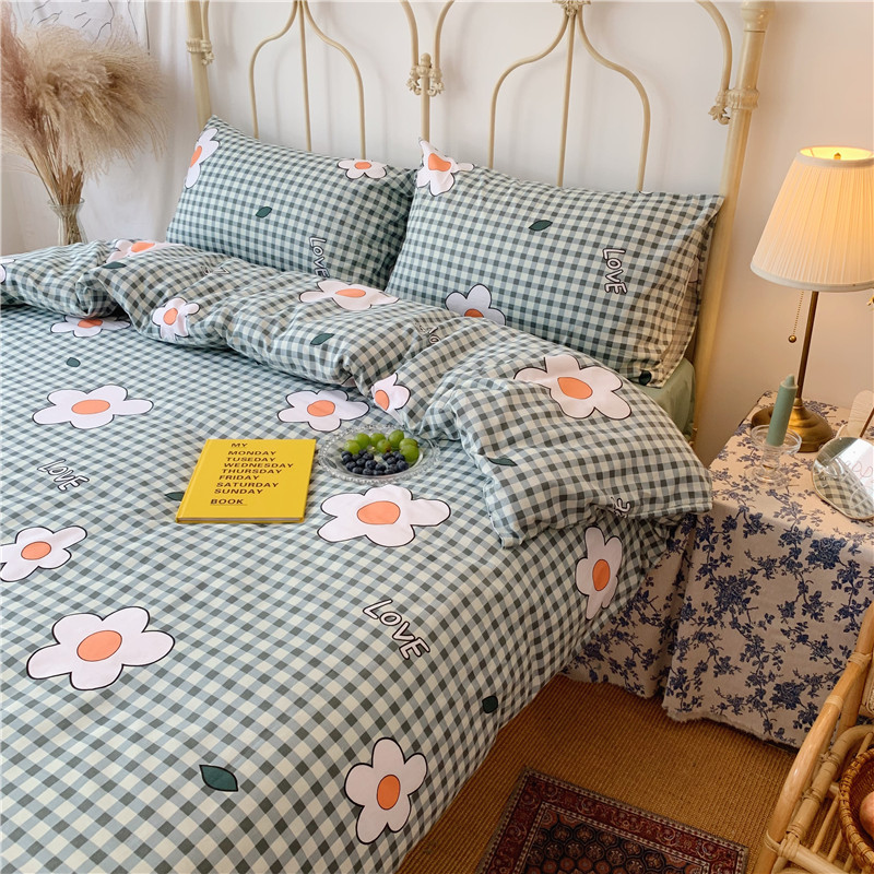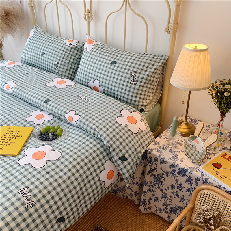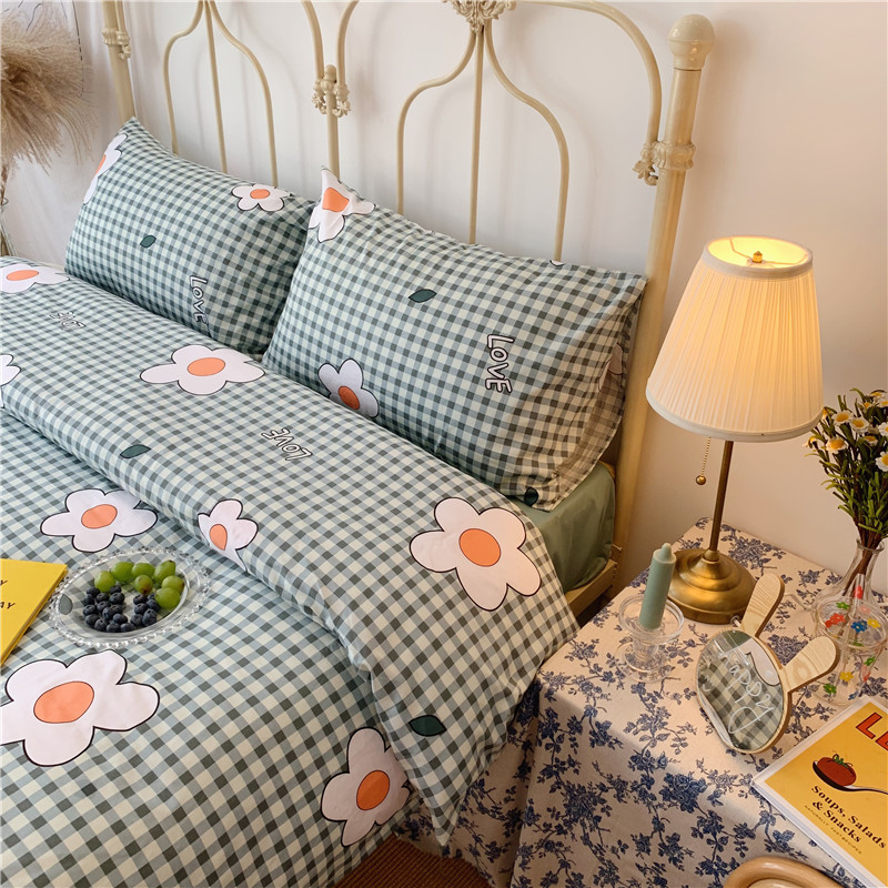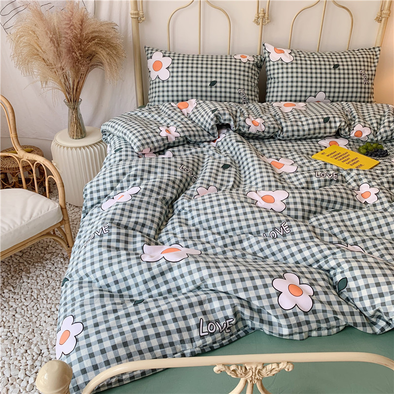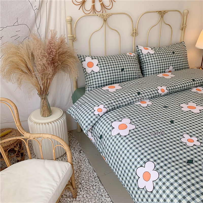 (总)昔可 2023新款全棉ins格子混搭系列四件套,ins简约绿格,粉蓝格,开心果格,学院格纹,粉绿格,海盐兰格,黄绿格,夏日蓝条,芝士黄条,紫芋泥芝士格