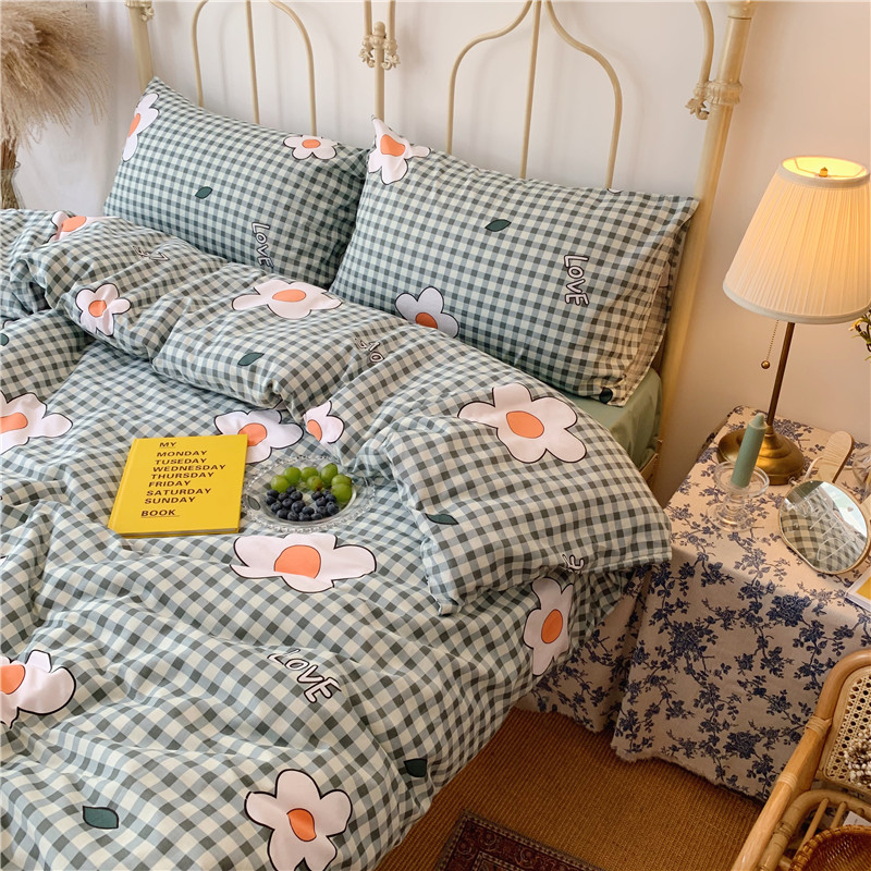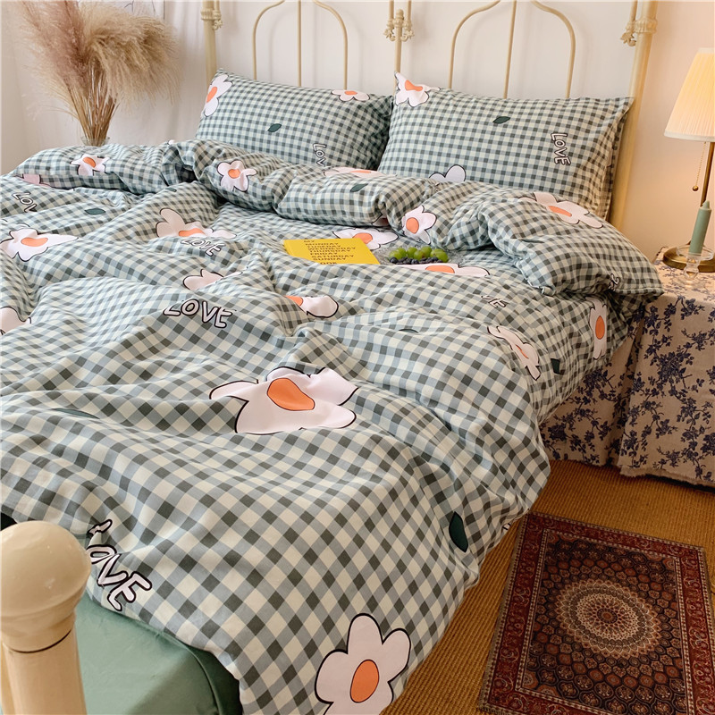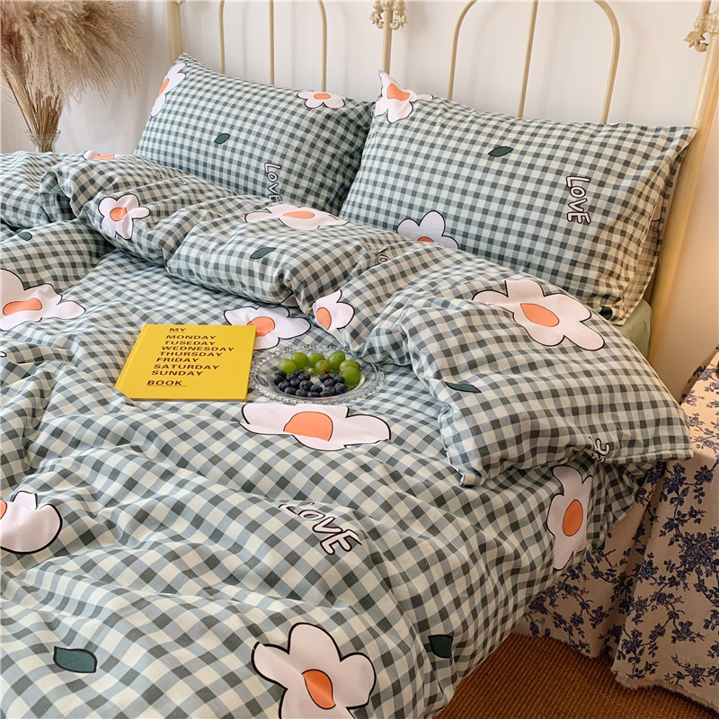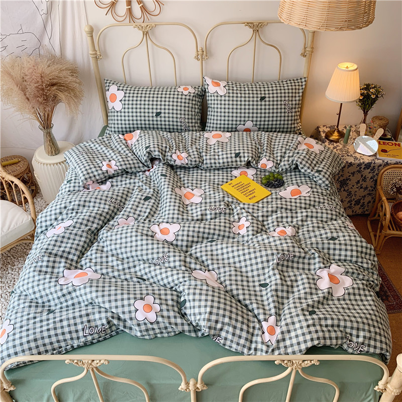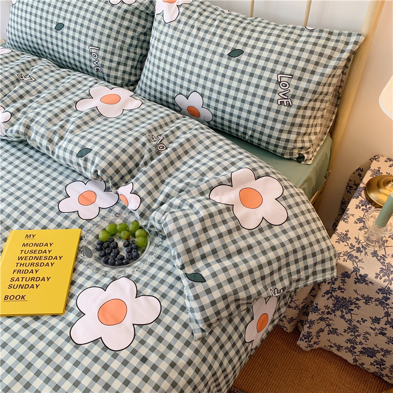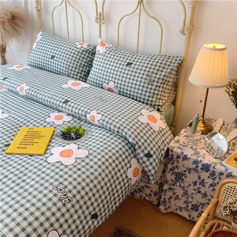 (总)昔可 2023新款全棉ins格子混搭系列四件套,ins简约绿格,粉蓝格,开心果格,学院格纹,粉绿格,海盐兰格,黄绿格,夏日蓝条,芝士黄条,紫芋泥芝士格