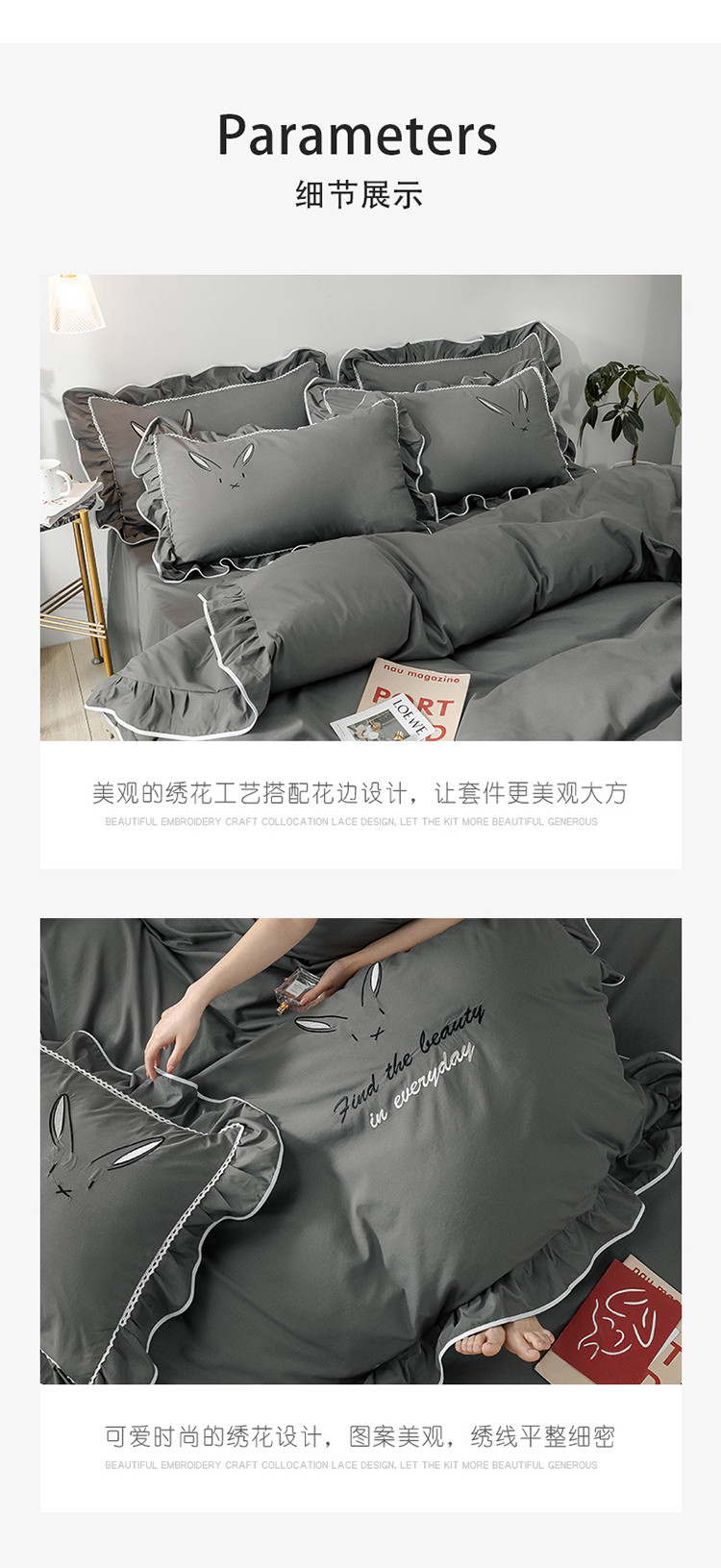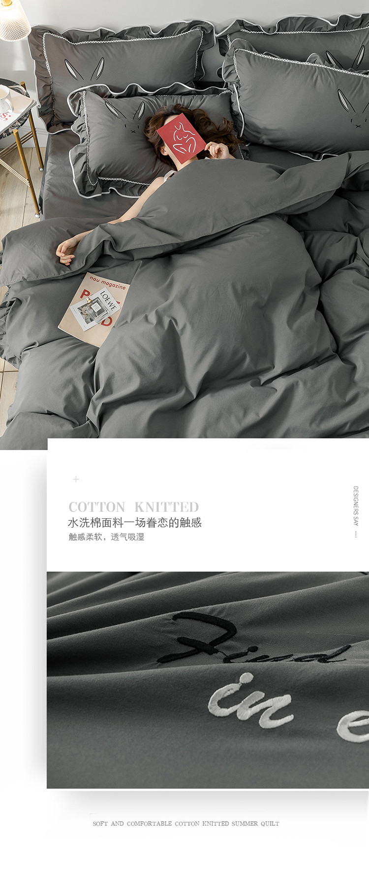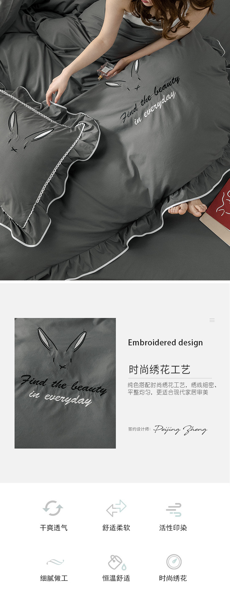 商品名称:ab家纺 2020新款兔耳朵绣花水洗棉四件套 深灰